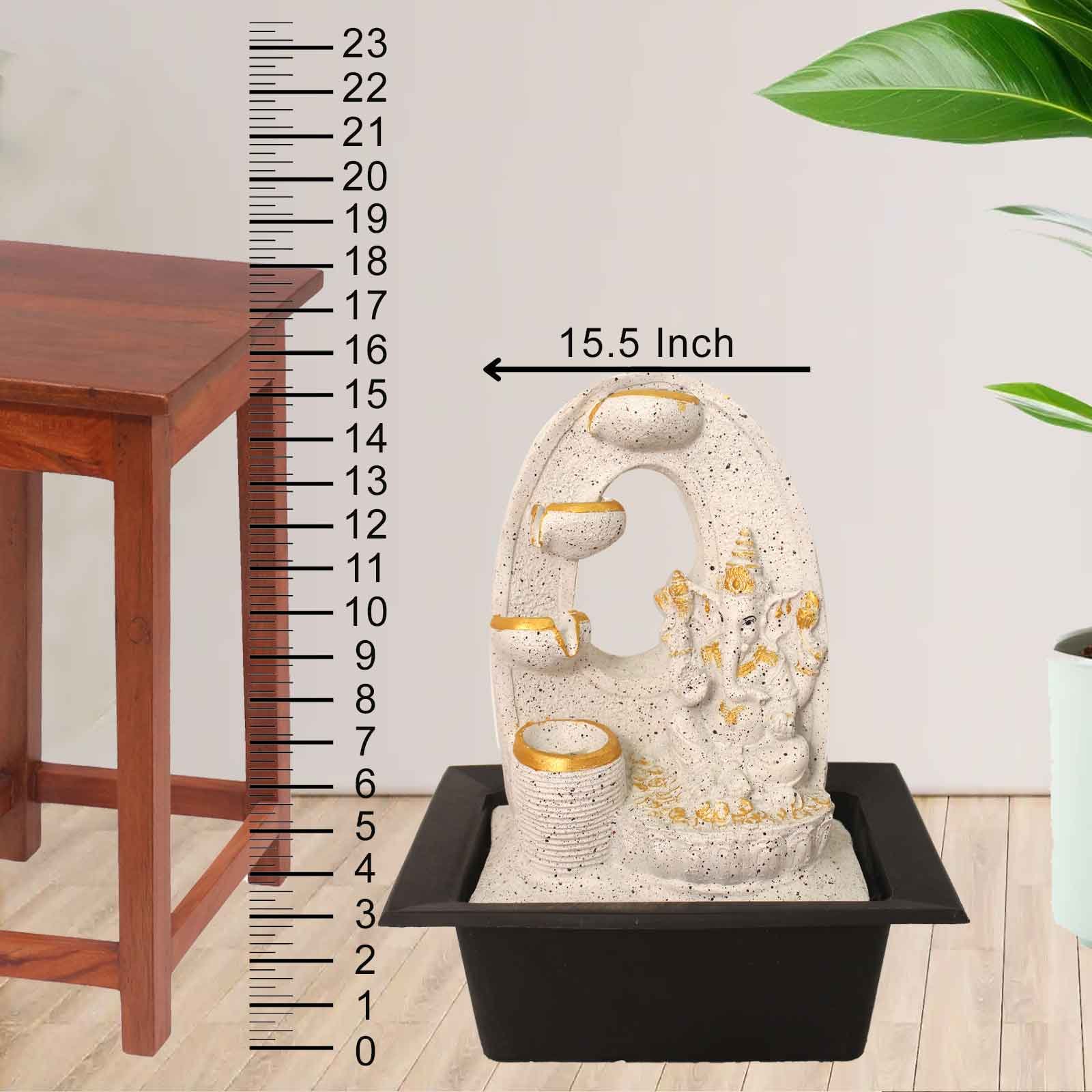 Polyresin Ganesh small desktop water fountain With Led Light - sandstone Finish 39 cm G57GX0194WGDMX