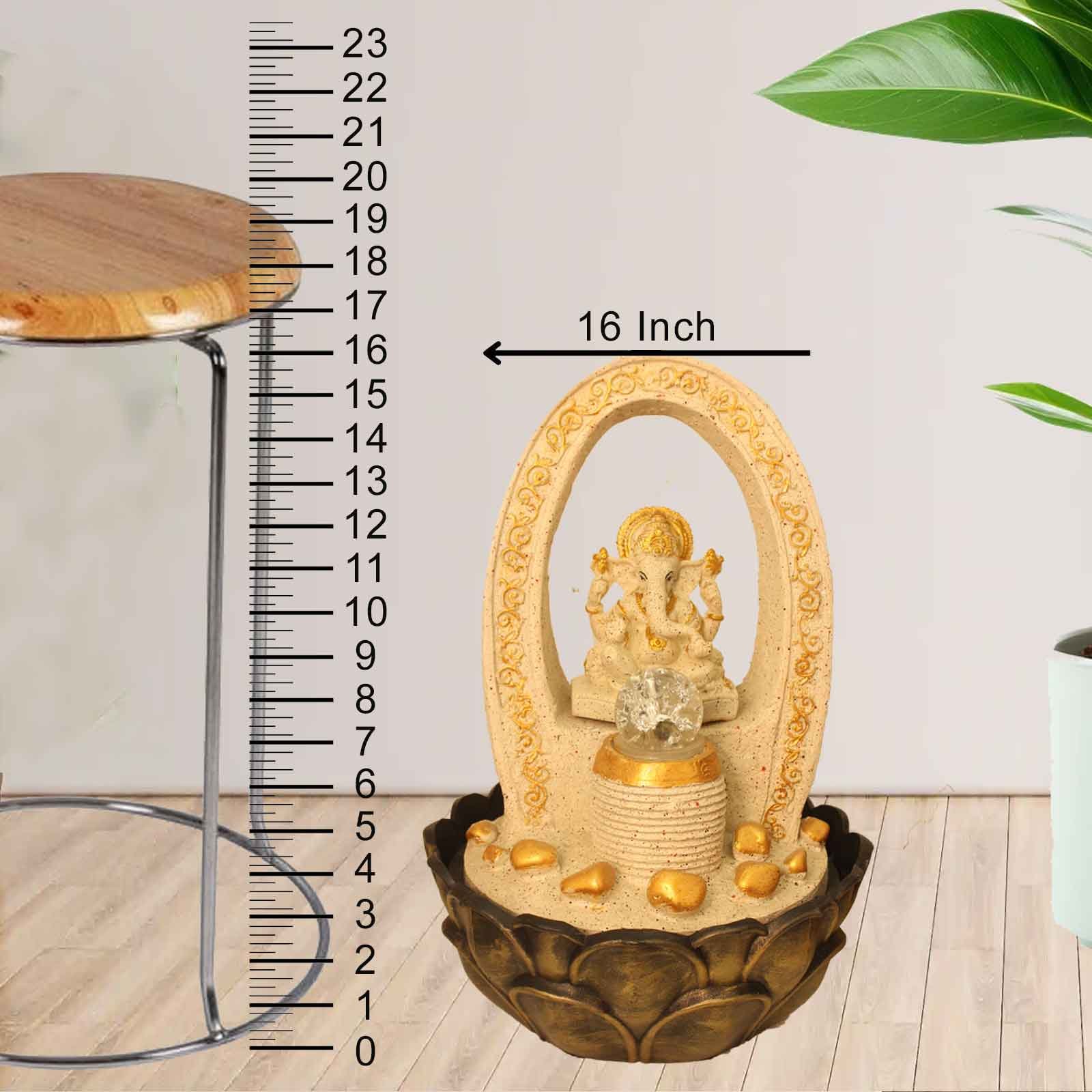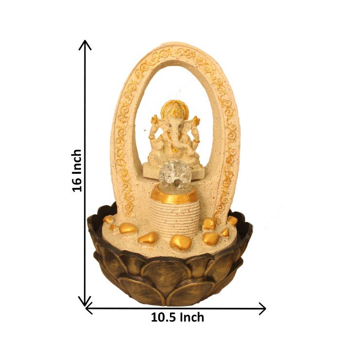 Lord Ganpati tabletop fountain indoor With Led Light & Crystal Ball - Metalic An...