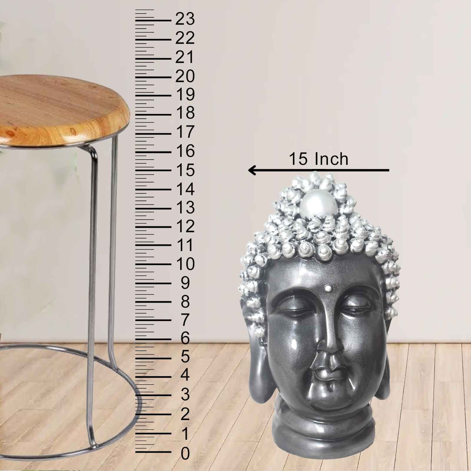 Polyresin Gautam Buddha Head figures for living room Silver Antique Finish 38 cm G57GX1064SSAGX