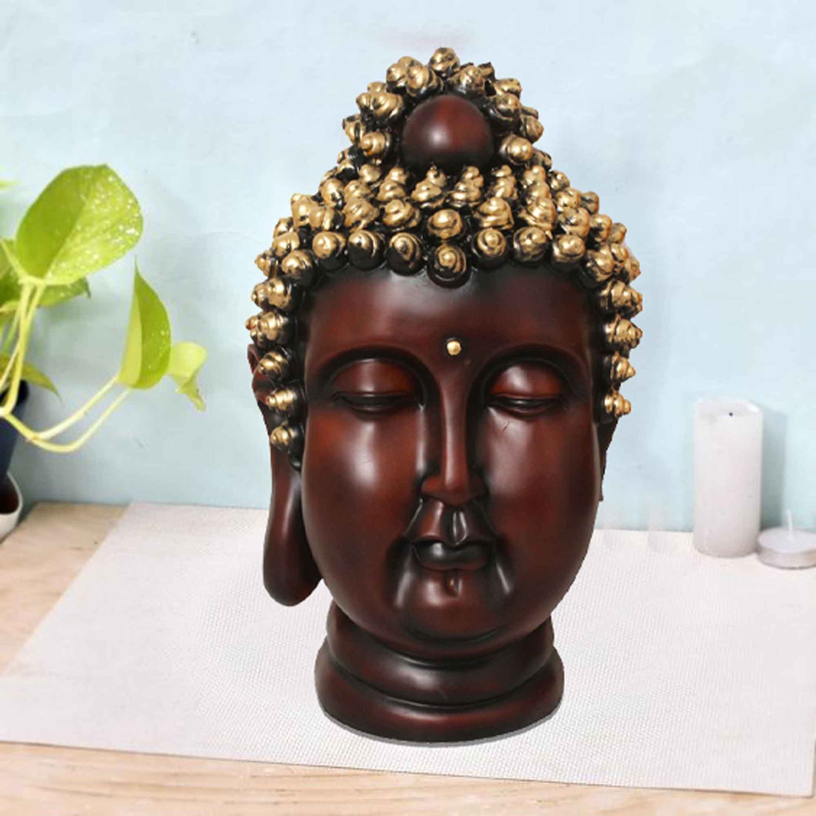 Make in India Polyresin Gautam Buddha Head is made by professional artisans using high quality row material. Great look with unfadable color. Showpiece direct from factory at wholesale price This Showpiece is easily cleanable by wet/Dry Cotton Cloth.