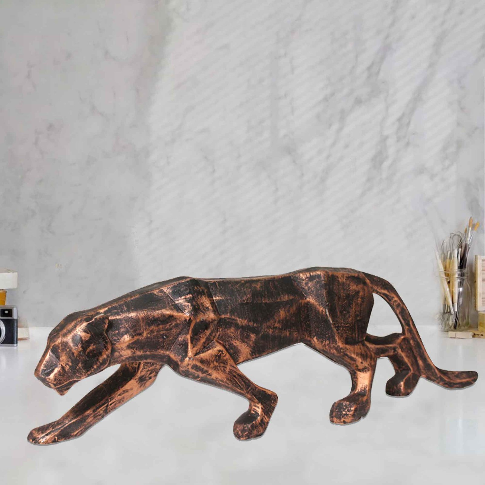 Make in India Polyresin Panther is made by professional artisans using high quality row material. Great look with unfadable color. Showpiece direct from factory at wholesale price This Showpiece is easily cleanable by wet/Dry Cotton Cloth.