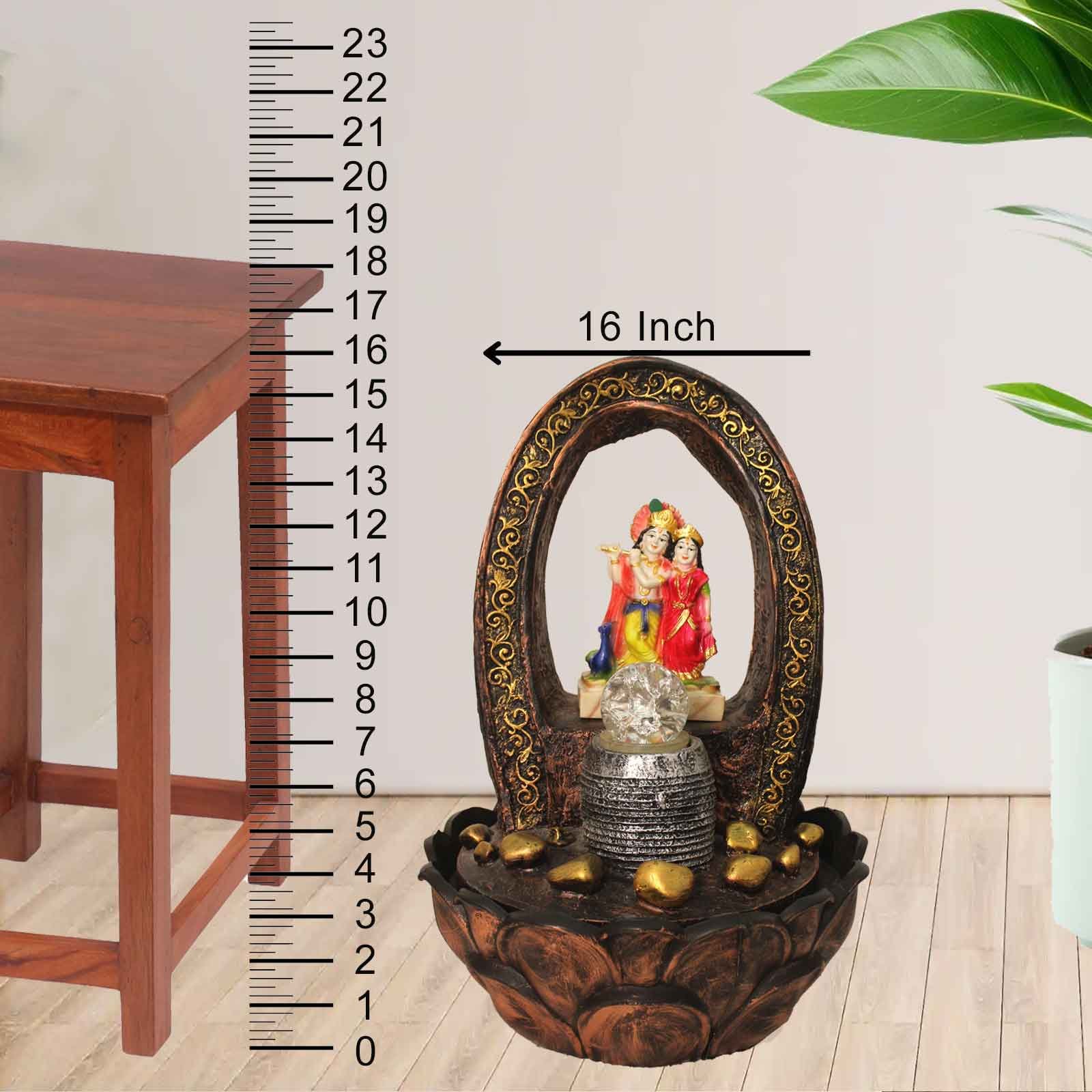 Radha Krishna Home Decor Showpiece tabletop water fountain for home With Led Lig...
