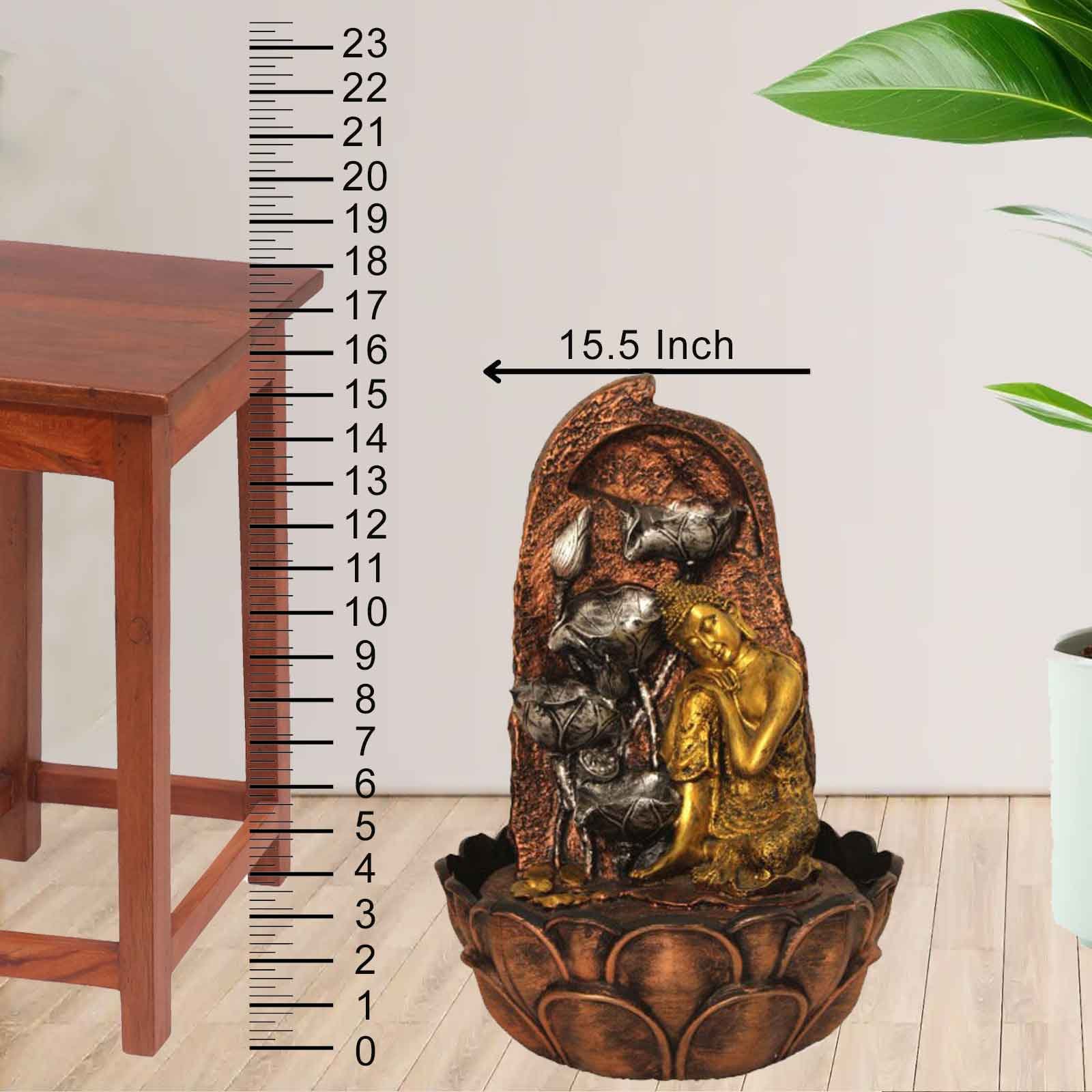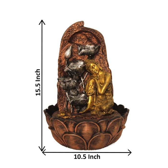 Handicraft Buddha fountain for living room With Led Light - Metalic Antique Fini...