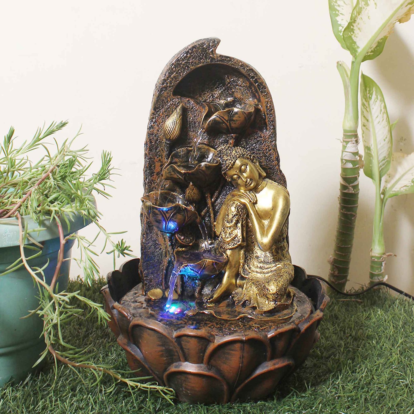Flower Art Buddha calming water fountain With Led Light - Metalic Antique Finish...