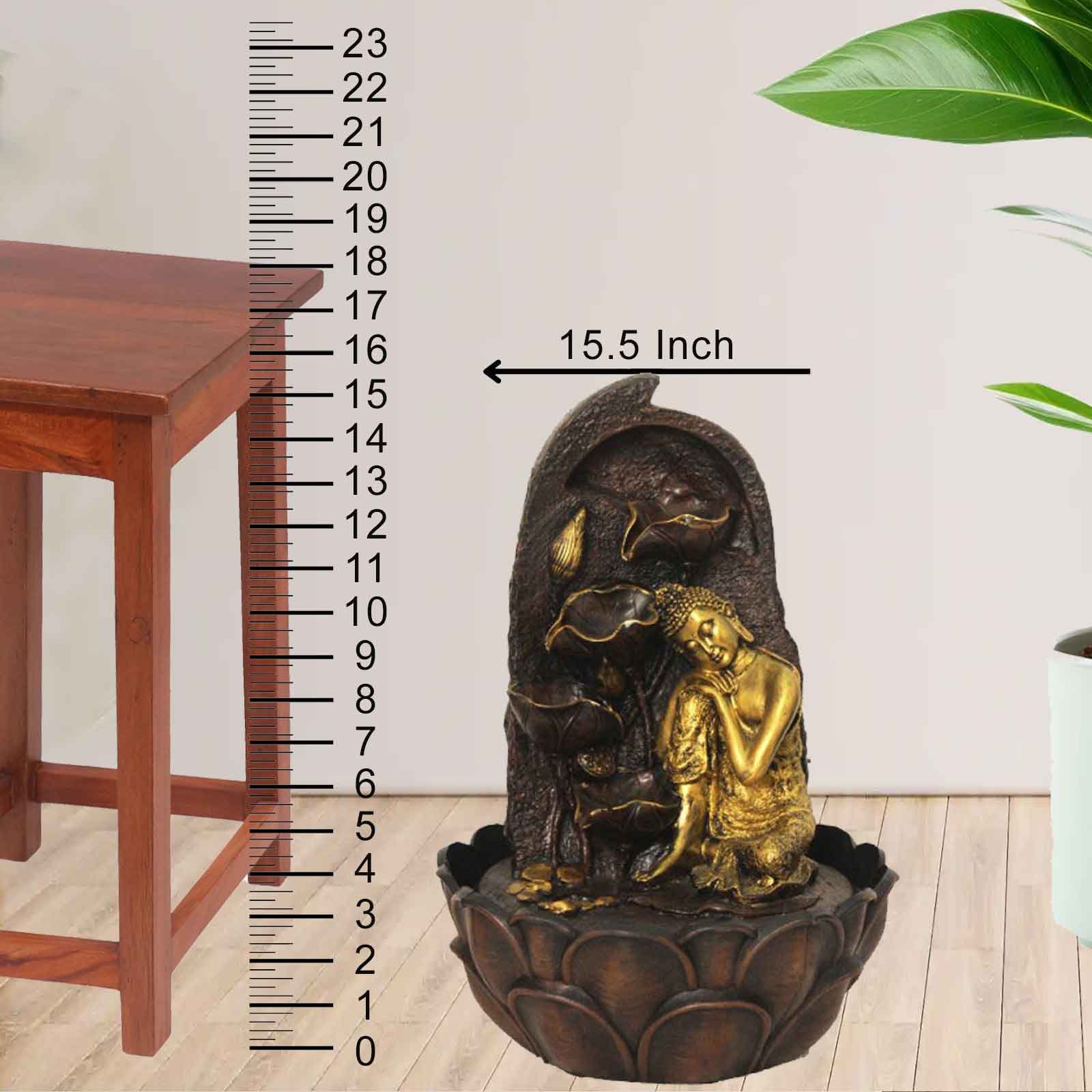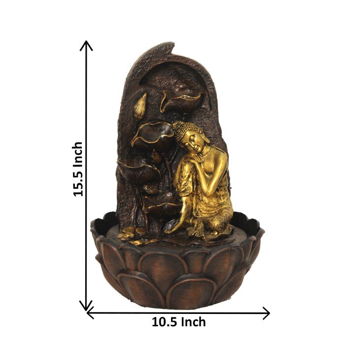 Lord Gautam Buddha indoor fountain With Led Light - Metalic Antique Finish 41 cm...