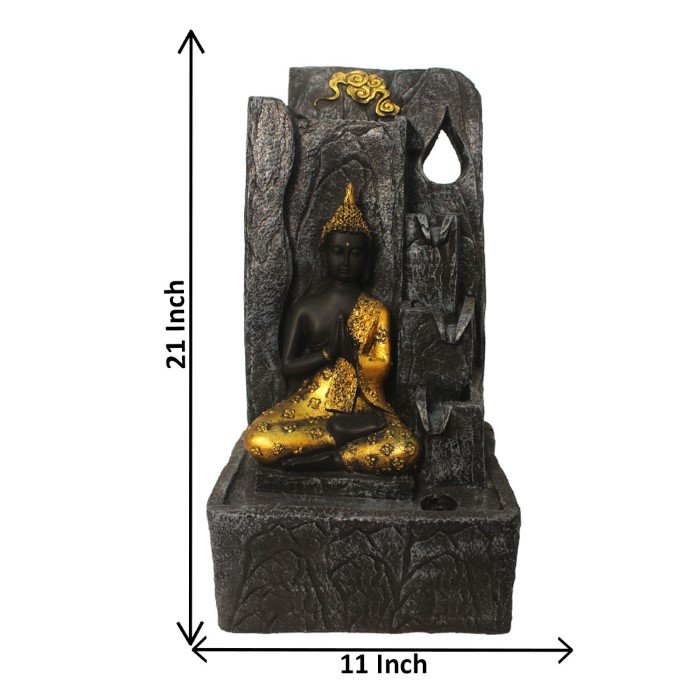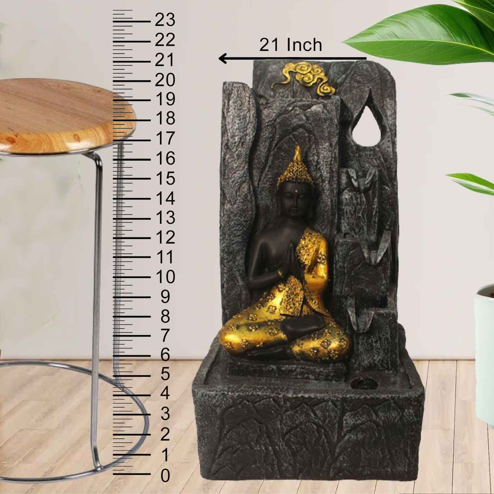 Pranam Buddha waterfall for home decoration Large Size With Led Light - Metalic Antique Finish 53 cm G57GX0433FGAMX