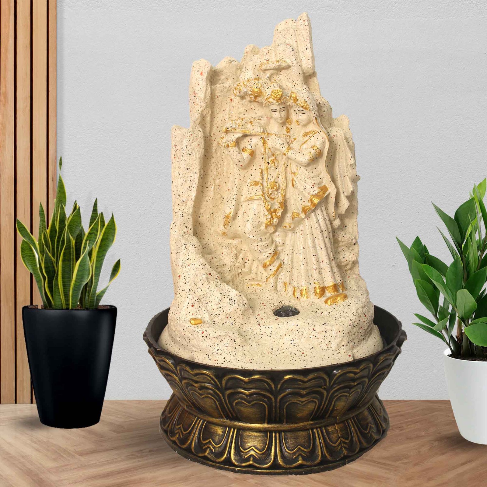 Radha Krishna Home Decor Showpiece tabletop fountain With Led Light - sandstone Finish 42 cm G57GX0042IGDMX