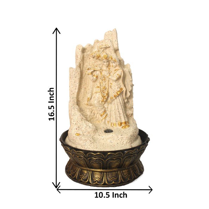 Home decor Radha krishnaindoor water fountain is a beautiful showpiece for home decor. This indoor water fountain not only looks great but also brings positivity to your space. Sound effect of water fountain helps create a positive and harmonious environment. As a home decorative water fountain, it adds a touch of elegance and peace to your living space. This Lord Radha Krishna also makes for a wonderful decorative gift item for home decoration, ideal for housewarmings or special occasions. An indoor water fountain is best decoration and thoughtful gift. Whether placed in a living room, home, office, showroom, restaurant, hotel and wedding hall, the gentle sound of flowing water can enhance the beauty of area. As a gift, an indoor water fountain is not only visually appealing but also symbolizes harmony and balance. Water fountain is best ideal decorative gift choice as birthday, housewarming, office / shop inauguration, New Year, Wedding, Corporate Diwali gifts or any occasion.