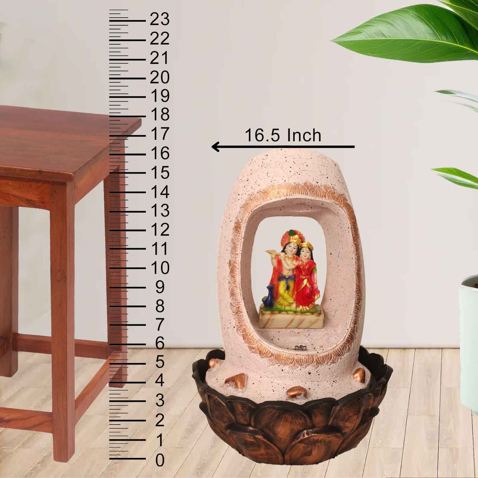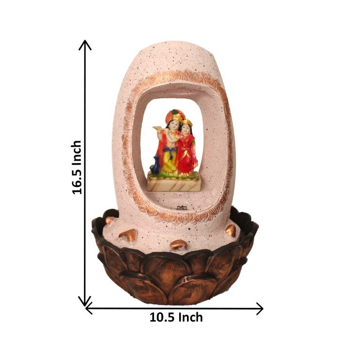 Lord Radha Krishna indoor water fountain is a beautiful showpiece for home decor. This indoor water fountain not only looks great but also brings positivity to your space. Sound effect of water fountain helps create a positive and harmonious environment. As a home decorative water fountain, it adds a touch of elegance and peace to your living space. This Lord Radha Krishna indoor water fountain also makes for a wonderful decorative gift item for home decoration, ideal for housewarmings or special occasions. An indoor water fountain is best decoration and thoughtful gift. Whether placed in a living room, home, office, showroom, restaurant, hotel and wedding hall, the gentle sound of flowing water can enhance the beauty of area. As a gift, an indoor water fountain is not only visually appealing but also symbolizes harmony and balance. Water fountain is best ideal decorative gift choice as birthday, housewarming, office / shop inauguration, New Year, Wedding, Corporate Diwali gifts or any occasion.