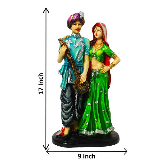 Make in India Rajasthani Musical Couple Statue is made by professional artisans using high quality row material. Great look with unfadable color. Showpiece direct from factory at wholesale price This Showpiece is easily cleanable by wet/Dry Cotton Cloth.