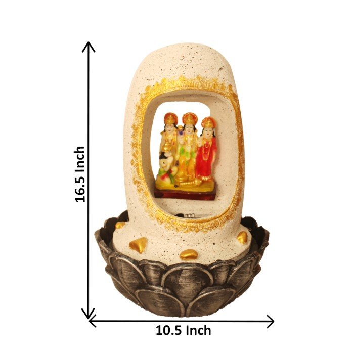 Ram Darbar indoor water fountain is a beautiful showpiece for home decor. This indoor water fountain not only looks great but also brings positivity to your space. Sound effect of water fountain helps create a positive and harmonious environment. As a home decorative water fountain, it adds a touch of elegance and peace to your living space. This Ram Darbar indoor water fountain also makes for a wonderful decorative gift item for home decoration, ideal for housewarmings or special occasions. An indoor water fountain is best decoration and thoughtful gift. Whether placed in a living room, home, office, showroom, restaurant, hotel and wedding hall, the gentle sound of flowing water can enhance the beauty of area. As a gift, an indoor water fountain is not only visually appealing but also symbolizes harmony and balance. Water fountain is best ideal decorative gift choice as birthday, housewarming, office / shop inauguration, New Year, Wedding, Corporate Diwali gifts or any occasion.
