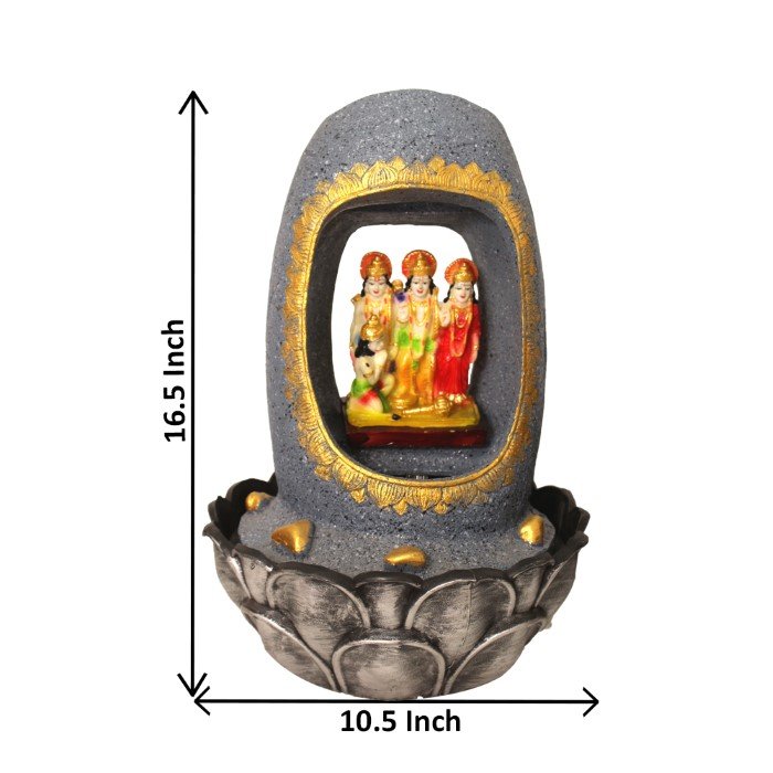 Ram Darbar indoor water fountain is a beautiful showpiece for home decor. This indoor water fountain not only looks great but also brings positivity to your space. Sound effect of water fountain helps create a positive and harmonious environment. As a home decorative water fountain, it adds a touch of elegance and peace to your living space. This Ram Darbar also makes for a wonderful decorative gift item for home decoration, ideal for housewarmings or special occasions. An indoor water fountain is best decoration and thoughtful gift. Whether placed in a living room, home, office, showroom, restaurant, hotel and wedding hall, the gentle sound of flowing water can enhance the beauty of area. As a gift, an indoor water fountain is not only visually appealing but also symbolizes harmony and balance. Water fountain is best ideal decorative gift choice as birthday, housewarming, office / shop inauguration, New Year, Wedding, Corporate Diwali gifts or any occasion.