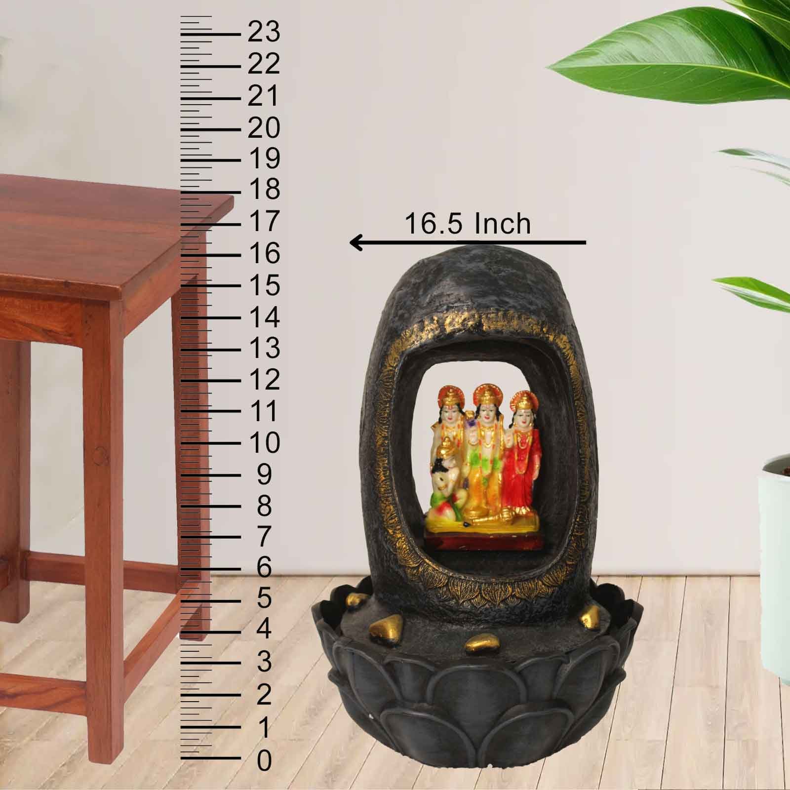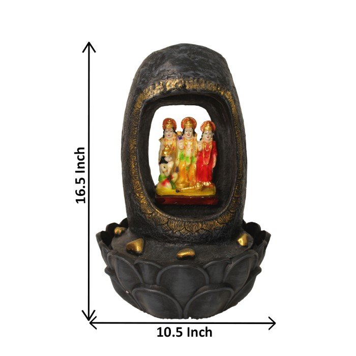 Ram Darbar indoor water fountain is a beautiful showpiece for home decor. This indoor water fountain not only looks great but also brings positivity to your space. Sound effect of water fountain helps create a positive and harmonious environment. As a home decorative water fountain, it adds a touch of elegance and peace to your living space. This Ram Darbar also makes for a wonderful decorative gift item for home decoration, ideal for housewarmings or special occasions. An indoor water fountain is best decoration and thoughtful gift. Whether placed in a living room, home, office, showroom, restaurant, hotel and wedding hall, the gentle sound of flowing water can enhance the beauty of area. As a gift, an indoor water fountain is not only visually appealing but also symbolizes harmony and balance. Water fountain is best ideal decorative gift choice as birthday, housewarming, office / shop inauguration, New Year, Wedding, Corporate Diwali gifts or any occasion.