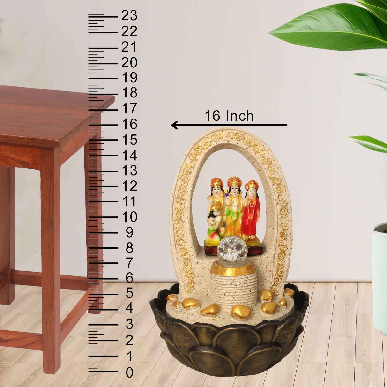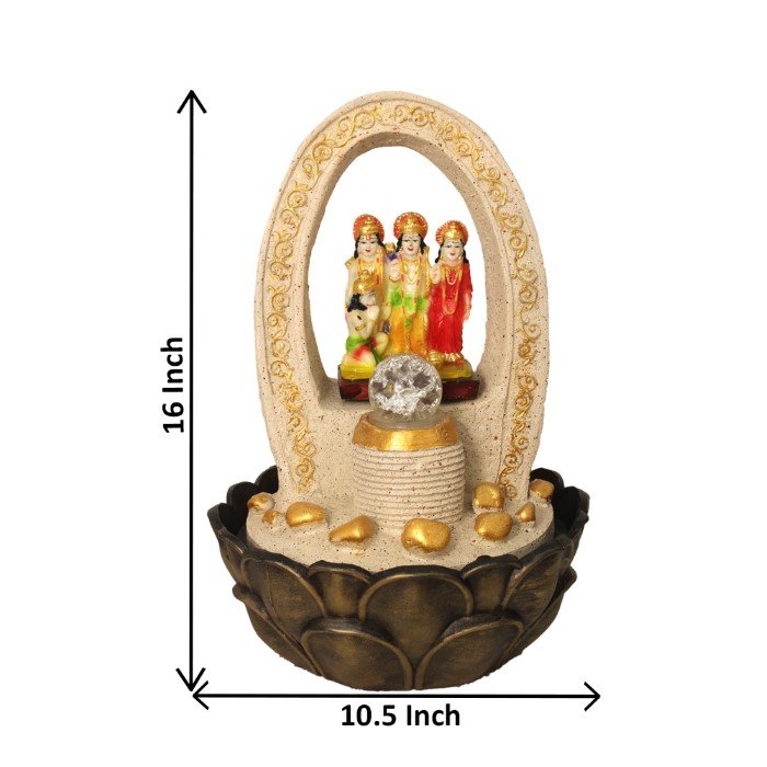 Ram Darbar indoor water fountain is a beautiful showpiece for home decor. This indoor water fountain not only looks great but also brings positivity to your space. Sound effect of water fountain helps create a positive and harmonious environment. As a home decorative water fountain, it adds a touch of elegance and peace to your living space. This Ram Darbar indoor water fountain with crystal ball also makes for a wonderful decorative gift item for home decoration, ideal for housewarmings or special occasions. An indoor water fountain is best decoration and thoughtful gift. Whether placed in a living room, home, office, showroom, restaurant, hotel and wedding hall, the gentle sound of flowing water can enhance the beauty of area. As a gift, an indoor water fountain is not only visually appealing but also symbolizes harmony and balance. Water fountain is best ideal decorative gift choice as birthday, housewarming, office / shop inauguration, New Year, Wedding, Corporate Diwali gifts or any occasion.