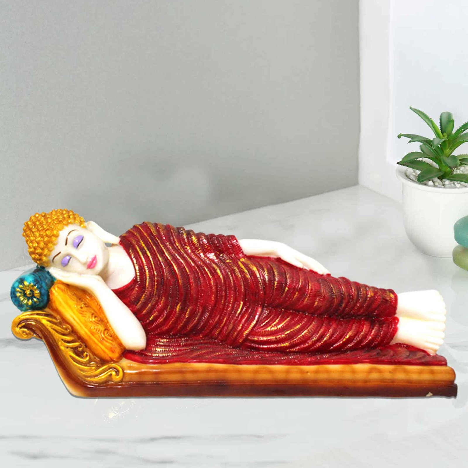 Make in India Resting Buddha is made by professional artisans using high quality row material. Great look with unfadable color. Showpiece direct from factory at wholesale price This Showpiece is easily cleanable by wet/Dry Cotton Cloth.