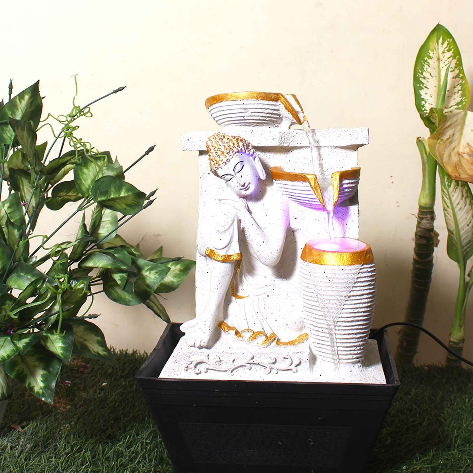 Thinking Buddha tabletop water fountain With Led Light - sandstone Finish 41 cm ...
