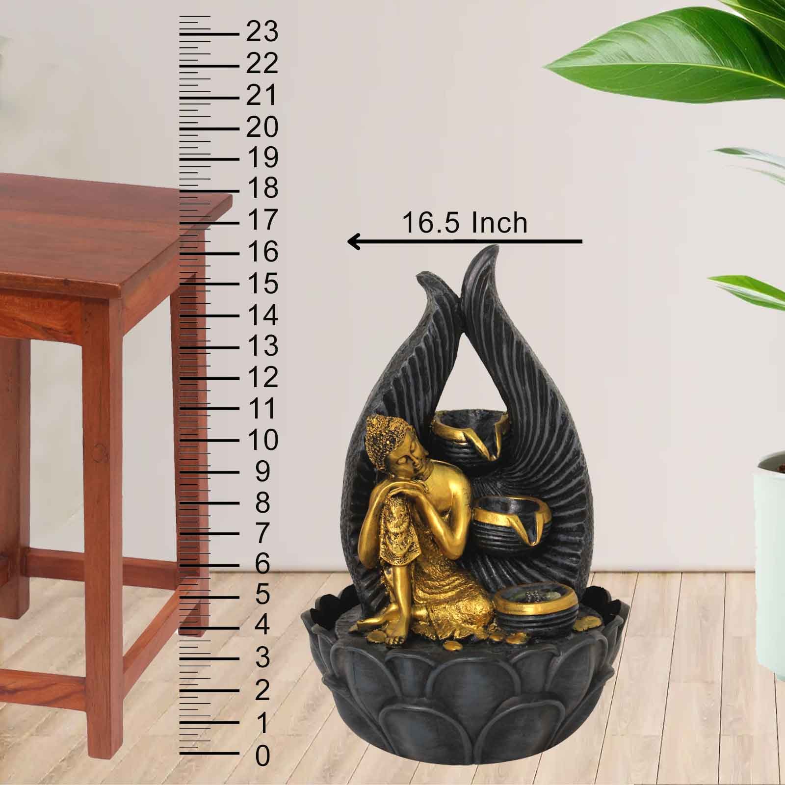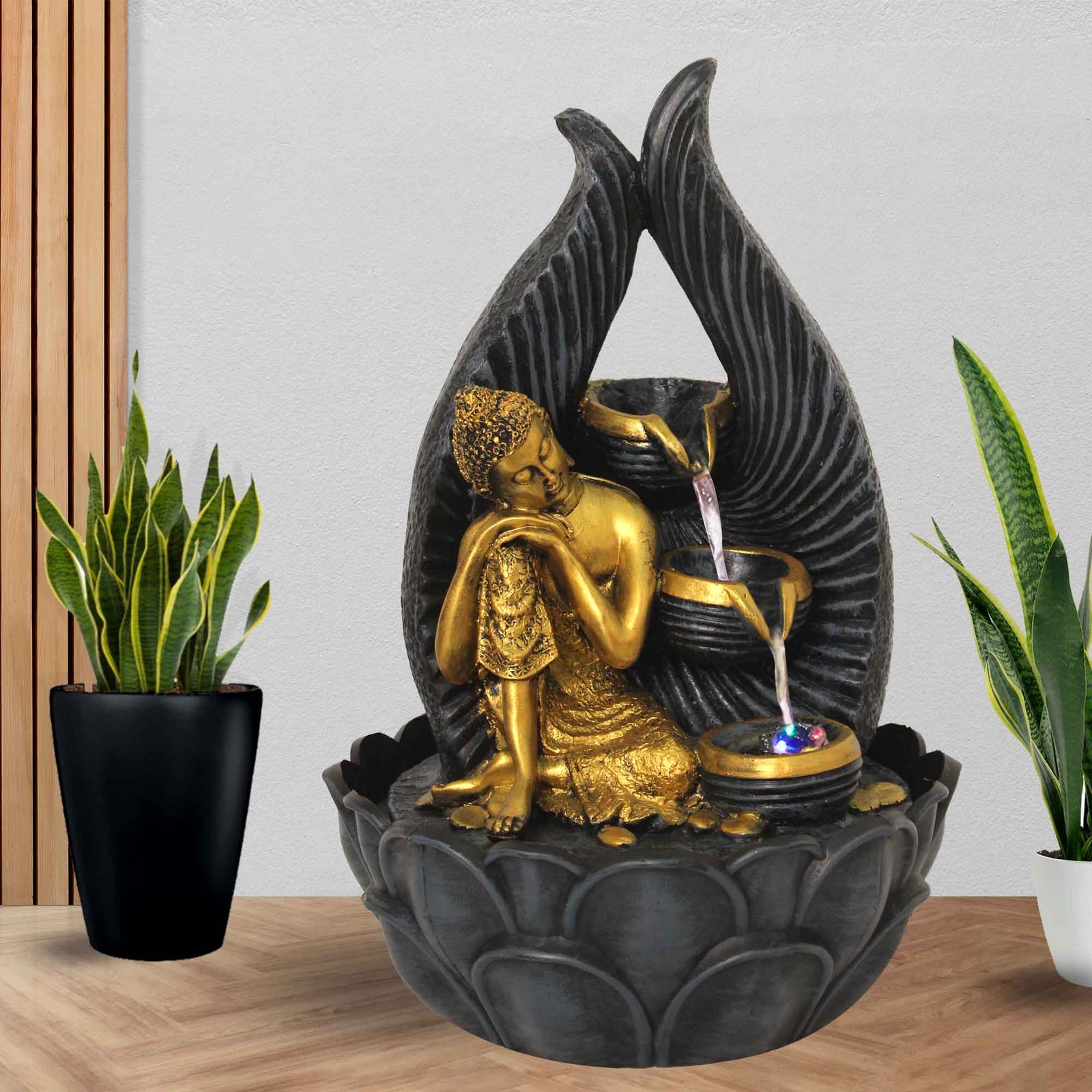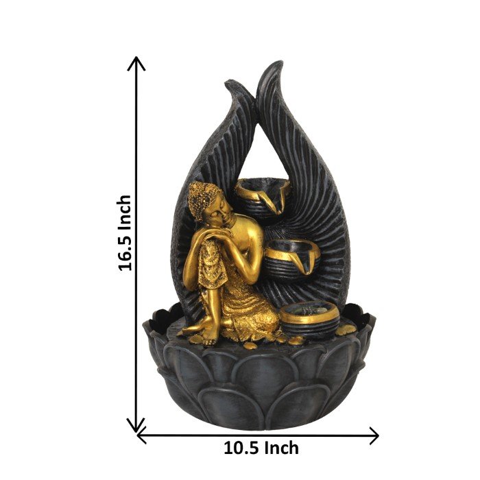 Resting Gautam Buddha indoor water fountain is a beautiful showpiece for home decor. This indoor water fountain not only looks great but also brings positivity to your space. Sound effect of water fountain helps create a positive and harmonious environment. As a home decorative water fountain, it adds a touch of elegance and peace to your living space. This Resting Buddha water fountain also makes for a wonderful decorative gift item for home decoration, ideal for housewarmings or special occasions. An indoor water fountain is best decoration and thoughtful gift. Whether placed in a living room, home, office, showroom, restaurant, hotel and wedding hall, the gentle sound of flowing water can enhance the beauty of area. As a gift, an indoor water fountain is not only visually appealing but also symbolizes harmony and balance. Water fountain is best ideal decorative gift choice as birthday, housewarming, office / shop inauguration, New Year, Wedding, Corporate Diwali gifts or any occasion.