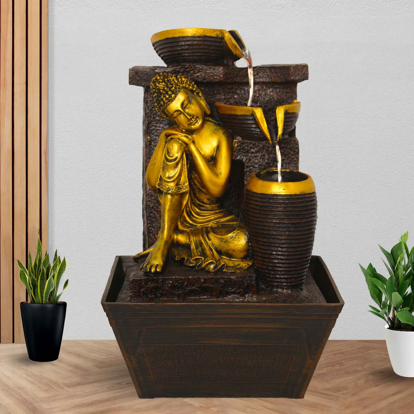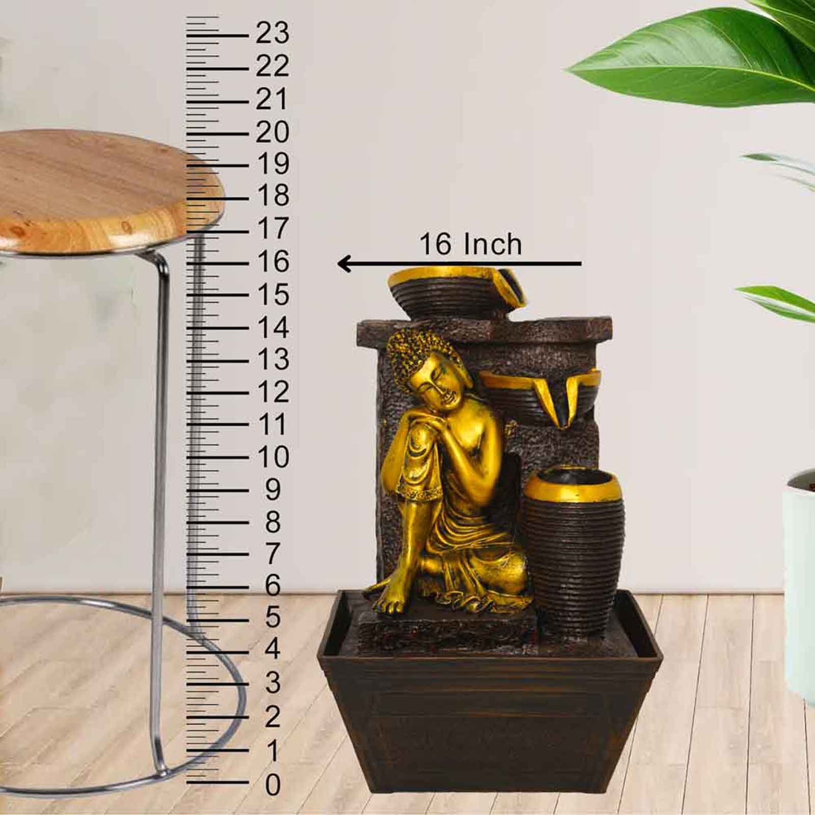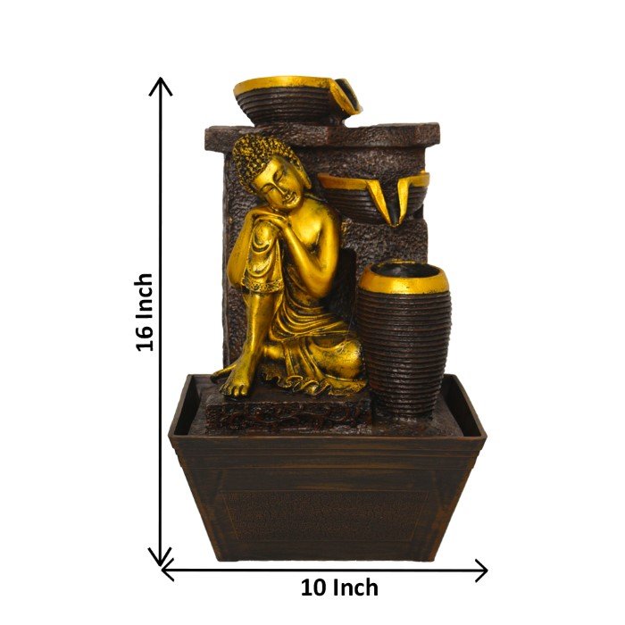 Resting Buddha indoor water fountain is a beautiful showpiece for home decor. This indoor water fountain not only looks great but also brings positivity to your space. Sound effect of water fountain helps create a positive and harmonious environment. As a home decorative water fountain, it adds a touch of elegance and peace to your living space. This Resting Buddha also makes for a wonderful decorative gift item for home decoration, ideal for housewarmings or special occasions. An indoor water fountain is best decoration and thoughtful gift. Whether placed in a living room, home, office, showroom, restaurant, hotel and wedding hall, the gentle sound of flowing water can enhance the beauty of area. As a gift, an indoor water fountain is not only visually appealing but also symbolizes harmony and balance. Water fountain is best ideal decorative gift choice as birthday, housewarming, office / shop inauguration, New Year, Wedding, Corporate Diwali gifts or any occasion.
