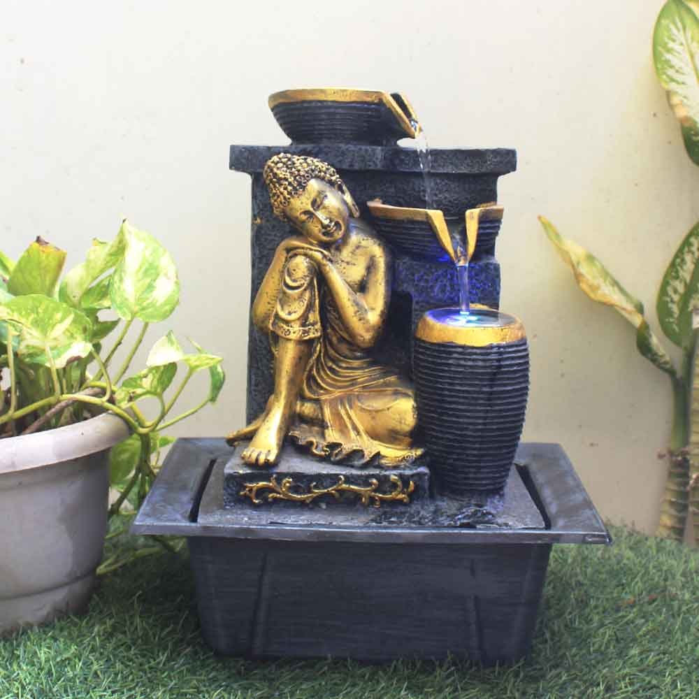 Resting Buddha water fountain for home With Led Light - Metalic Antique Finish 41 cm G57GX0315FGAMX