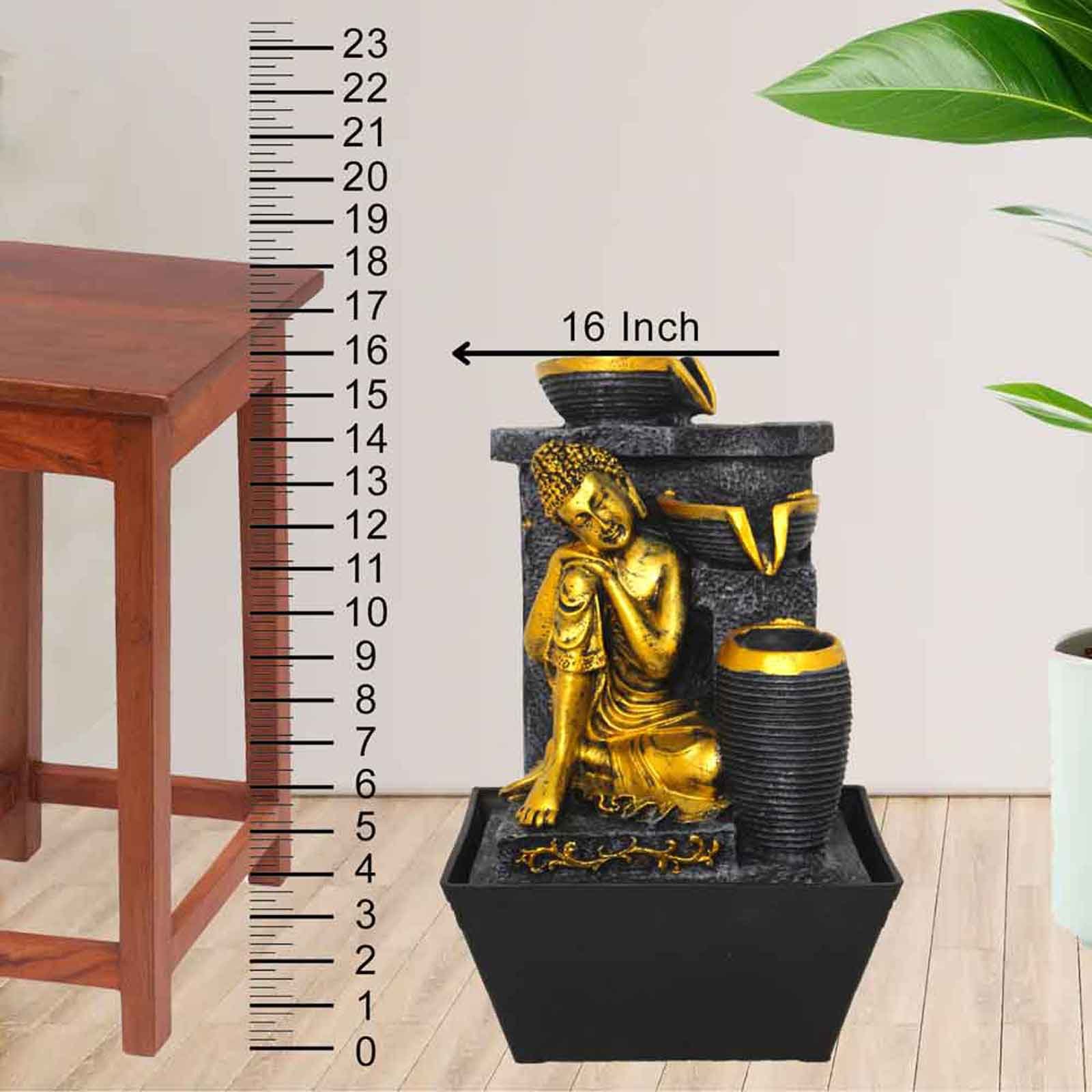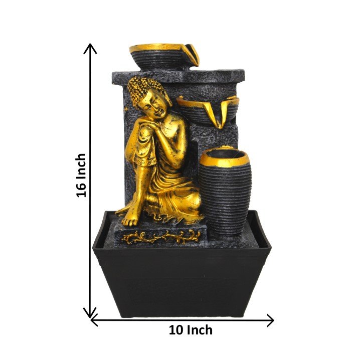 Resting Buddha indoor water fountain is a beautiful showpiece for home decor. This indoor water fountain not only looks great but also brings positivity to your space. Sound effect of water fountain helps create a positive and harmonious environment. As a home decorative water fountain, it adds a touch of elegance and peace to your living space. This Resting Buddha also makes for a wonderful decorative gift item for home decoration, ideal for housewarmings or special occasions. An indoor water fountain is best decoration and thoughtful gift. Whether placed in a living room, home, office, showroom, restaurant, hotel and wedding hall, the gentle sound of flowing water can enhance the beauty of area. As a gift, an indoor water fountain is not only visually appealing but also symbolizes harmony and balance. Water fountain is best ideal decorative gift choice as birthday, housewarming, office / shop inauguration, New Year, Wedding, Corporate Diwali gifts or any occasion.
