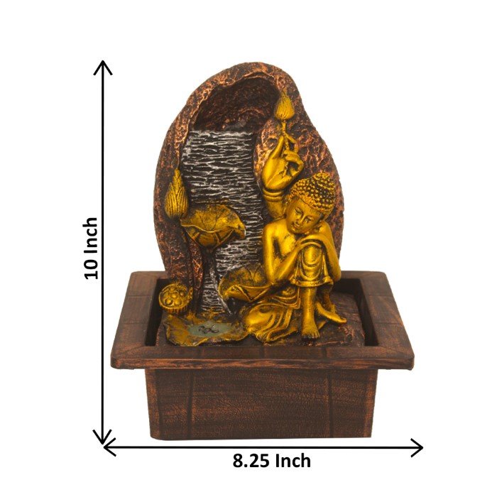 Resting Gautam Buddha indoor water fountain is a beautiful showpiece for home decor. This indoor water fountain not only looks great but also brings positivity to your space. Sound effect of water fountain helps create a positive and harmonious environment. As a home decorative water fountain, it adds a touch of elegance and peace to your living space. This Resting Buddha also makes for a wonderful decorative gift item for home decoration, ideal for housewarmings or special occasions. An indoor water fountain is best decoration and thoughtful gift. Whether placed in a living room, home, office, showroom, restaurant, hotel and wedding hall, the gentle sound of flowing water can enhance the beauty of area. As a gift, an indoor water fountain is not only visually appealing but also symbolizes harmony and balance. Water fountain is best ideal decorative gift choice as birthday, housewarming, office / shop inauguration, New Year, Wedding, Corporate Diwali gifts or any occasion.