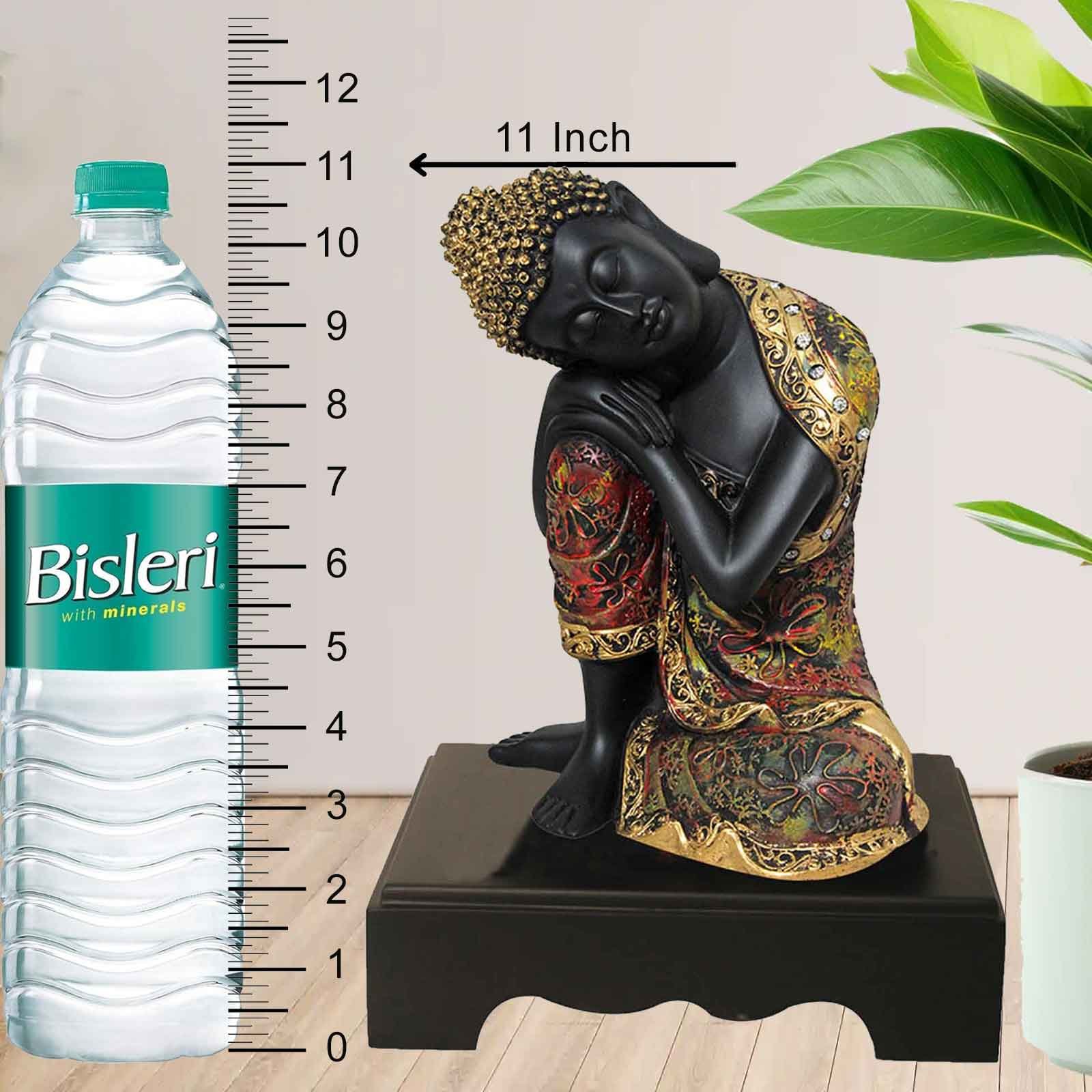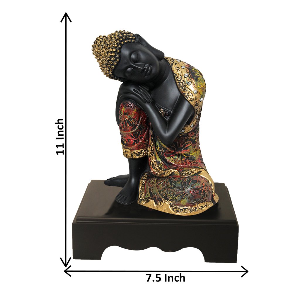 Resting Gautam Buddha sculpture for home decoration Multi Look with Wooden Base ...