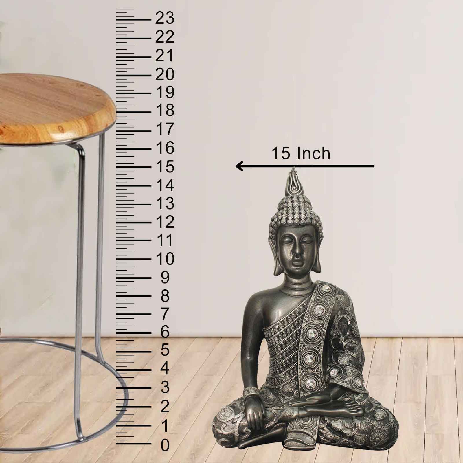 Samadhi Buddha figures for decoration Silver Antique Finish Jewellery Decorated 38 cm G57GX1285SSAGZ