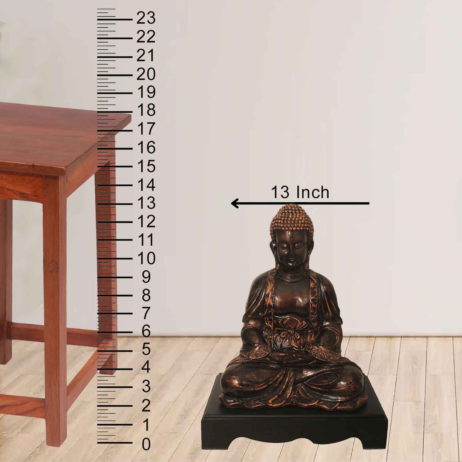 Samadhi Buddha idols for tv unit Copper Antique Finish with Wooden Base 33 cm G57GW1091CCAGX