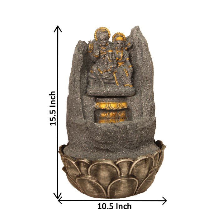 Lord Shiv Parivaar indoor water fountain is a beautiful showpiece for home decor. This indoor water fountain not only looks great but also brings positivity to your space. Sound effect of water fountain helps create a positive and harmonious environment. As a home decorative water fountain, it adds a touch of elegance and peace to your living space. This Lord Shiv Parivaar indoor water fountain also makes for a wonderful decorative gift item for home decoration, ideal for housewarmings or special occasions. An indoor water fountain is best decoration and thoughtful gift. Whether placed in a living room, home, office, showroom, restaurant, hotel and wedding hall, the gentle sound of flowing water can enhance the beauty of area. As a gift, an indoor water fountain is not only visually appealing but also symbolizes harmony and balance. Water fountain is best ideal decorative gift choice as birthday, housewarming, office / shop inauguration, New Year, Wedding, Corporate Diwali gifts or any occasion.