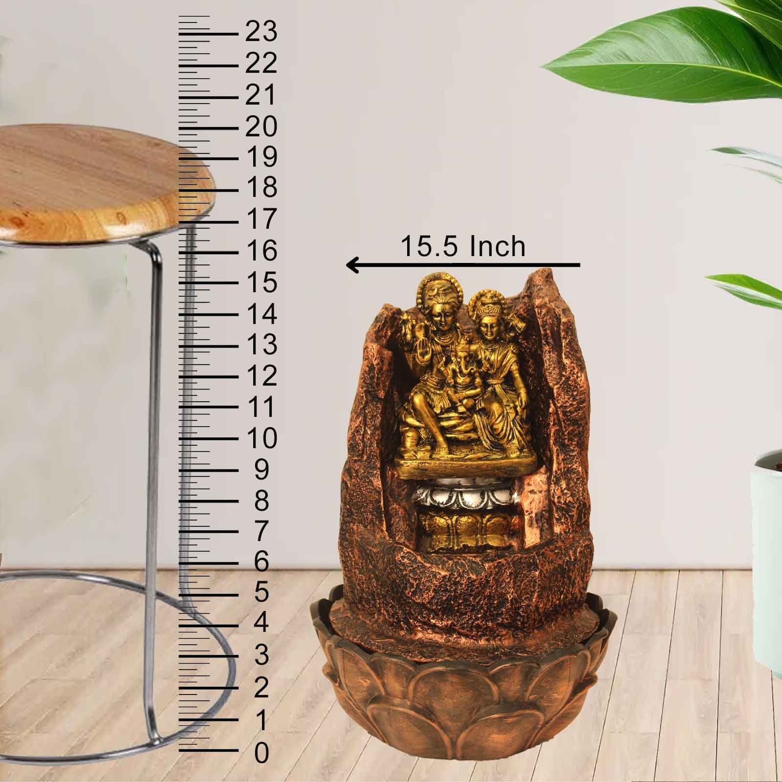 Shiv Parivar Pahad water fountain indoor feng shui With Led Light - Metalic Antique Finish 39 cm G57GX0490MGAMX-492