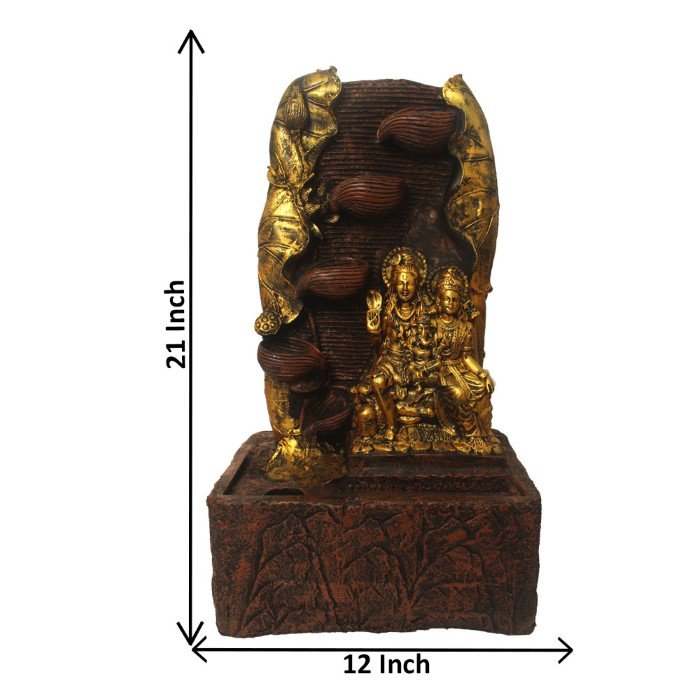 Lord Shiv parivar indoor water fountain is a beautiful showpiece for home decor. This indoor water fountain not only looks great but also brings positivity to your space. Sound effect of water fountain helps create a positive and harmonious environment. As a home decorative water fountain, it adds a touch of elegance and peace to your living space. This Lord Shiv parivar also makes for a wonderful decorative gift item for home decoration, ideal for housewarmings or special occasions. An indoor water fountain is best decoration and thoughtful gift. Whether placed in a living room, home, office, showroom, restaurant, hotel and wedding hall, the gentle sound of flowing water can enhance the beauty of area. As a gift, an indoor water fountain is not only visually appealing but also symbolizes harmony and balance. Water fountain is best ideal decorative gift choice as birthday, housewarming, office / shop inauguration, New Year, Wedding, Corporate Diwali gifts or any occasion.