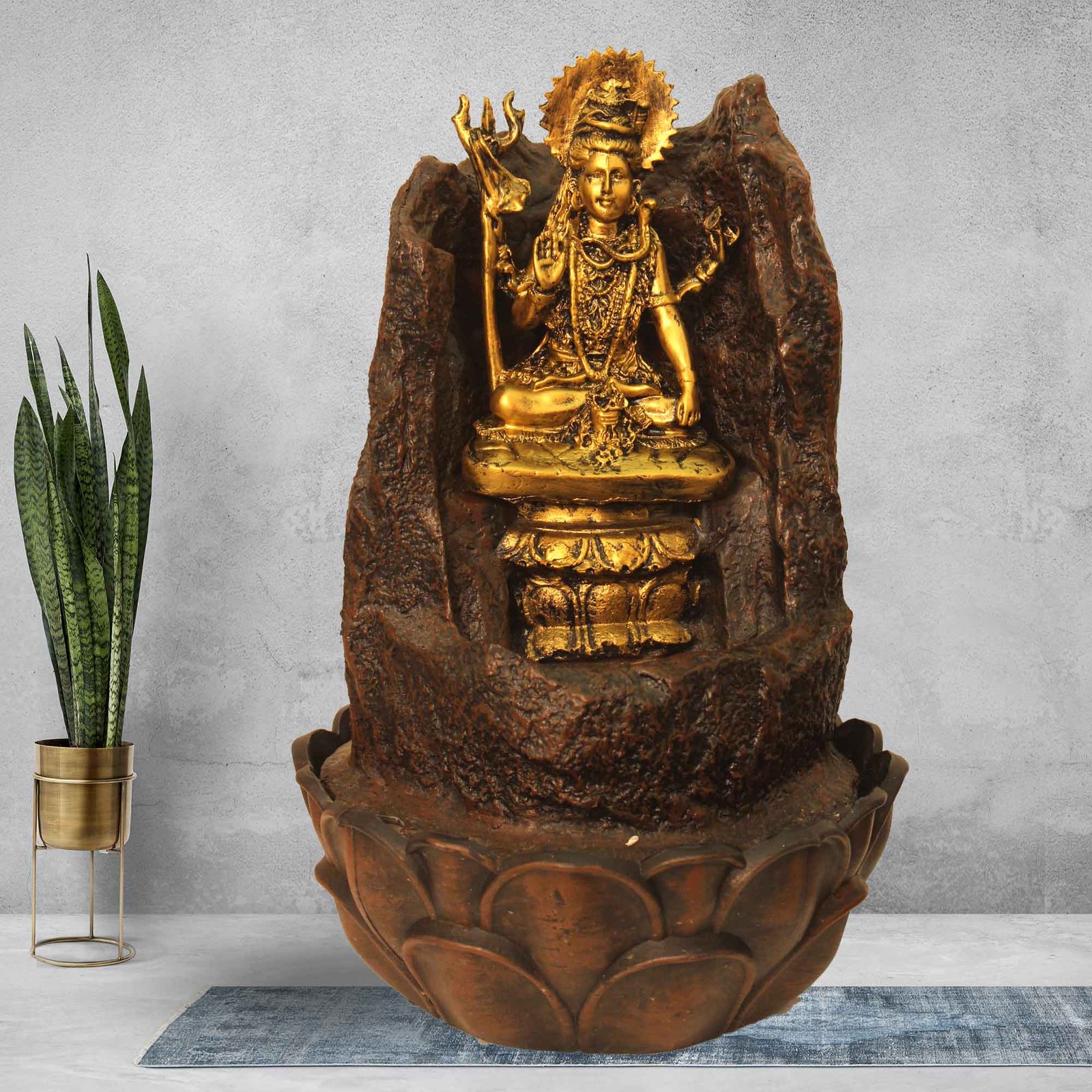 Lord Shiva calming water fountain With Led Light - Metalic Antique Finish 41 cm ...