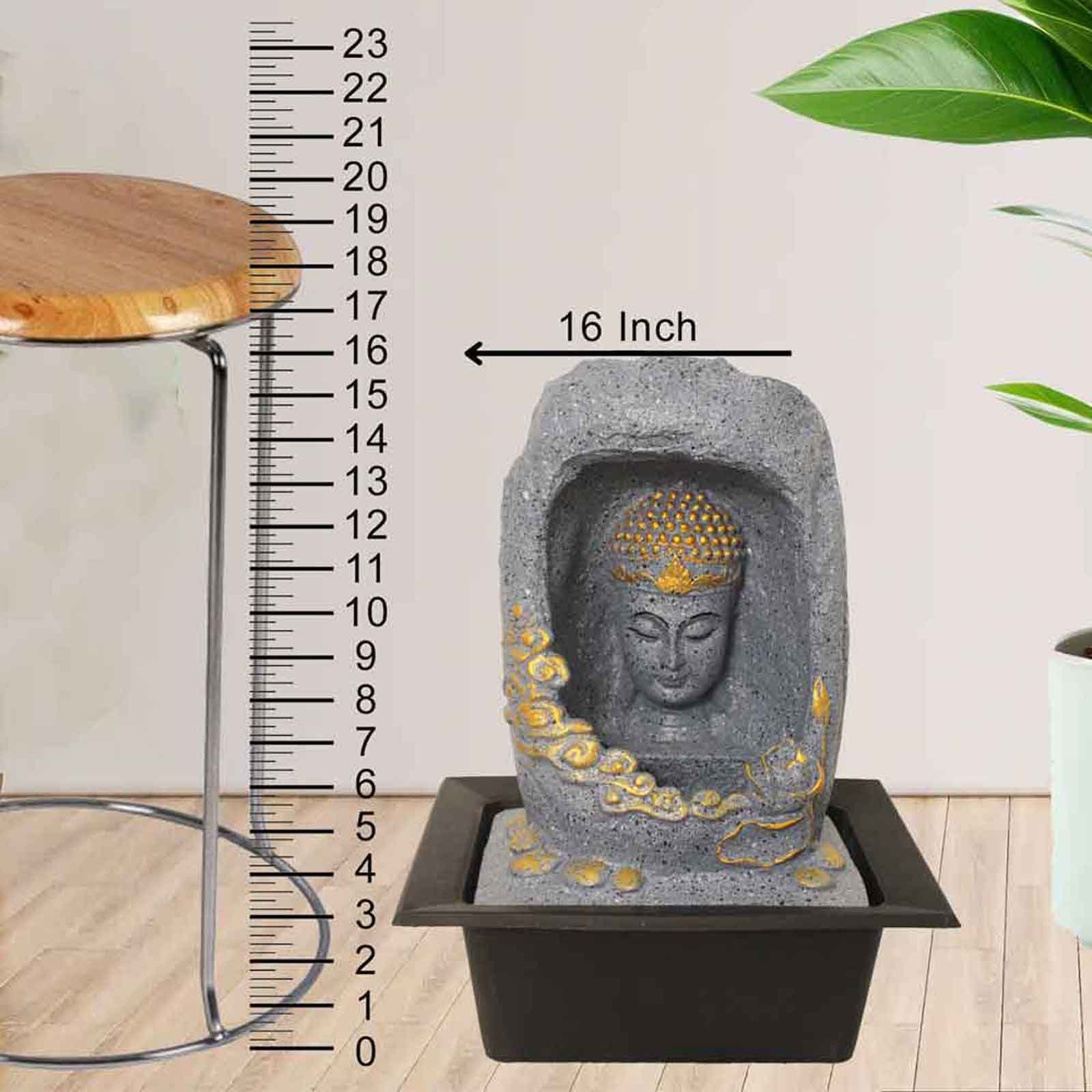 Buddha Face water fountain for home vastu With Led Light - Metalic Antique Finis...