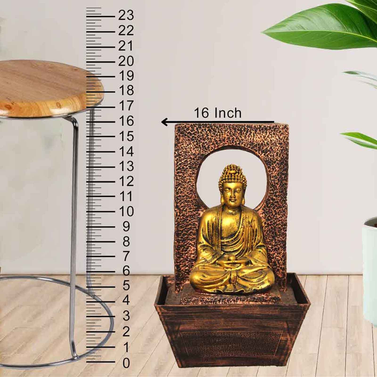 Meditation Buddha waterfall showpiece for living room With Led Light - Metalic A...