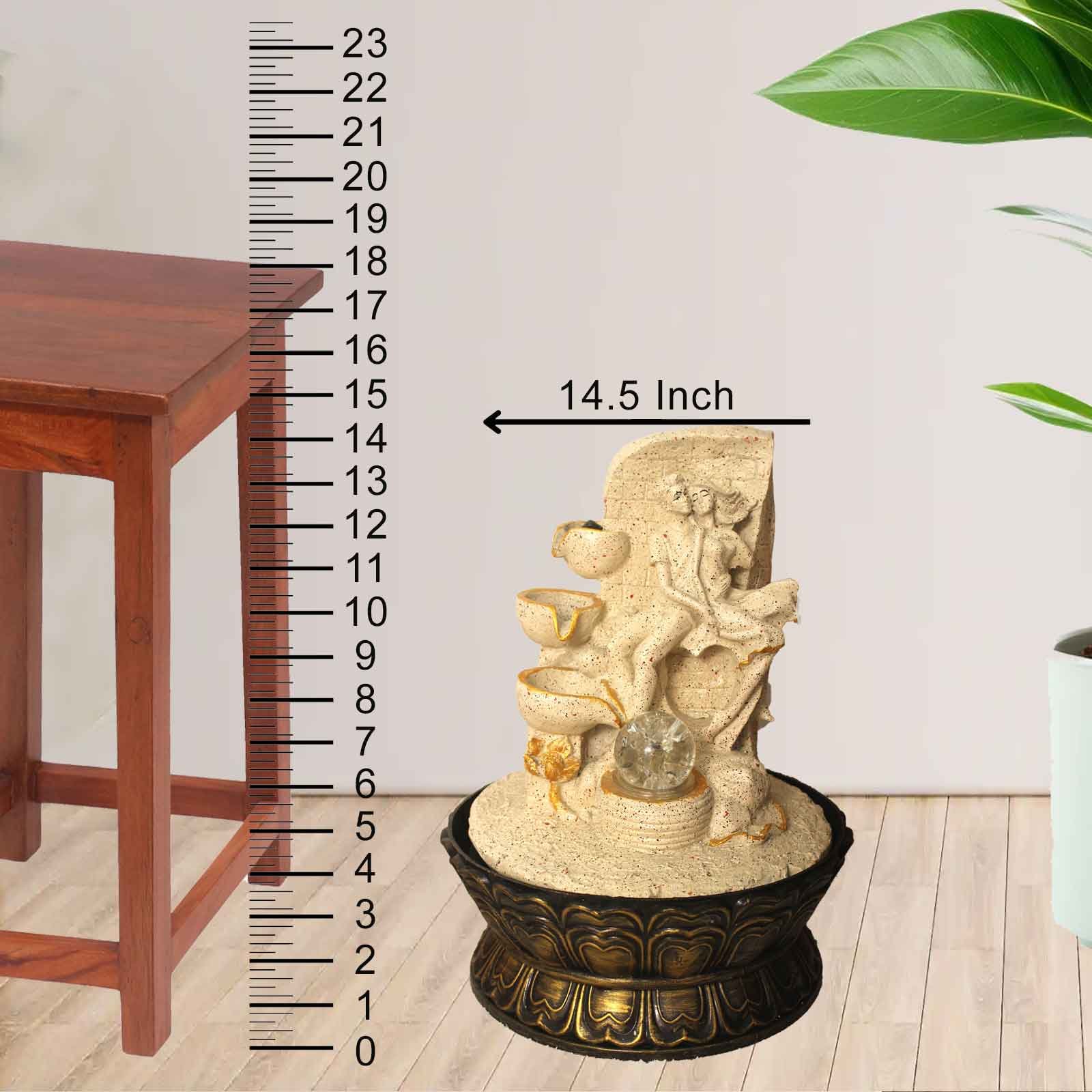 Showpiece Couple water fountain for home With Led Light & Crystal Ball - sandstone Finish 37 cm G57GX0609IGDMX