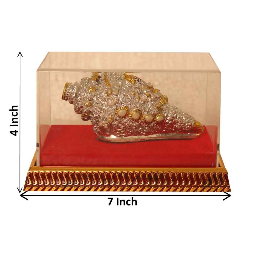 Make in India Silver Plated Cabinet Shankh is made by professional artisans using high quality row material. Great look with unfadable color. Showpiece direct from factory at wholesale price This Showpiece is easily cleanable by wet/Dry Cotton Cloth.