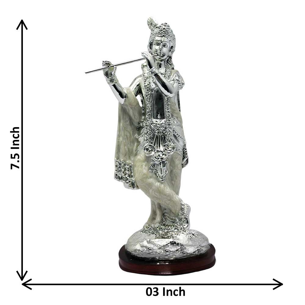 Silver Plated Krishna Statue for tv unit and living room 19 cm G15GX0438S000XTIS