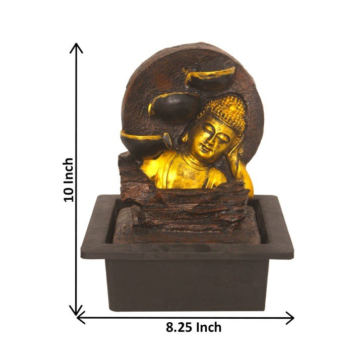 Buddha Sleeping Face indoor water fountain is a beautiful showpiece for home decor. This indoor water fountain not only looks great but also brings positivity to your space. Sound effect of water fountain helps create a positive and harmonious environment. As a home decorative water fountain, it adds a touch of elegance and peace to your living space. This Sleeping Buddha Face also makes for a wonderful decorative gift item for home decoration, ideal for housewarmings or special occasions. An indoor water fountain is best decoration and thoughtful gift. Whether placed in a living room, home, office, showroom, restaurant, hotel and wedding hall, the gentle sound of flowing water can enhance the beauty of area. As a gift, an indoor water fountain is not only visually appealing but also symbolizes harmony and balance. Water fountain is best ideal decorative gift choice as birthday, housewarming, office / shop inauguration, New Year, Wedding, Corporate Diwali gifts or any occasion.