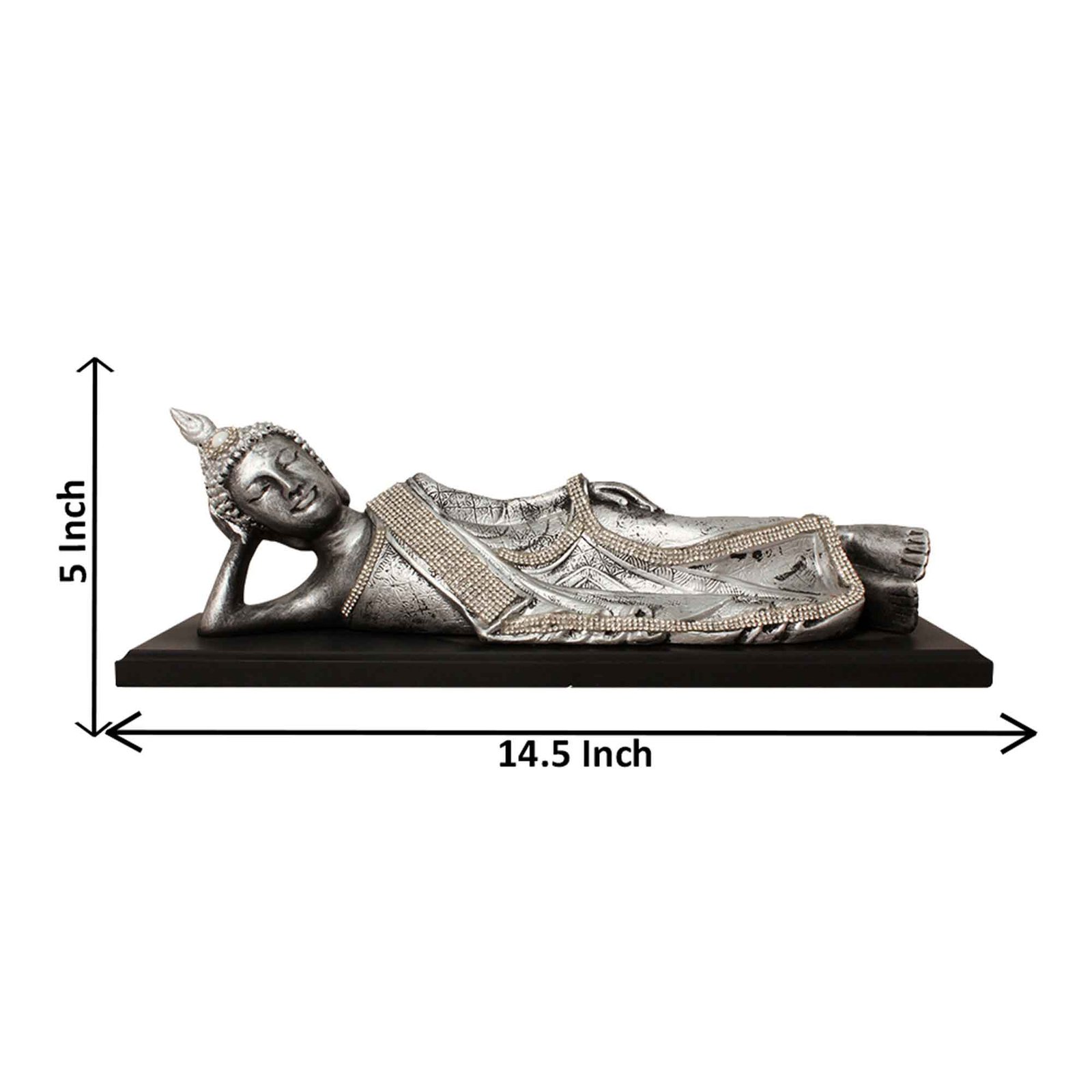 Sleeping Buddha figures for decoration Silver Antique Finish with Wooden Base 13 cm G57GW1102SSSGZ