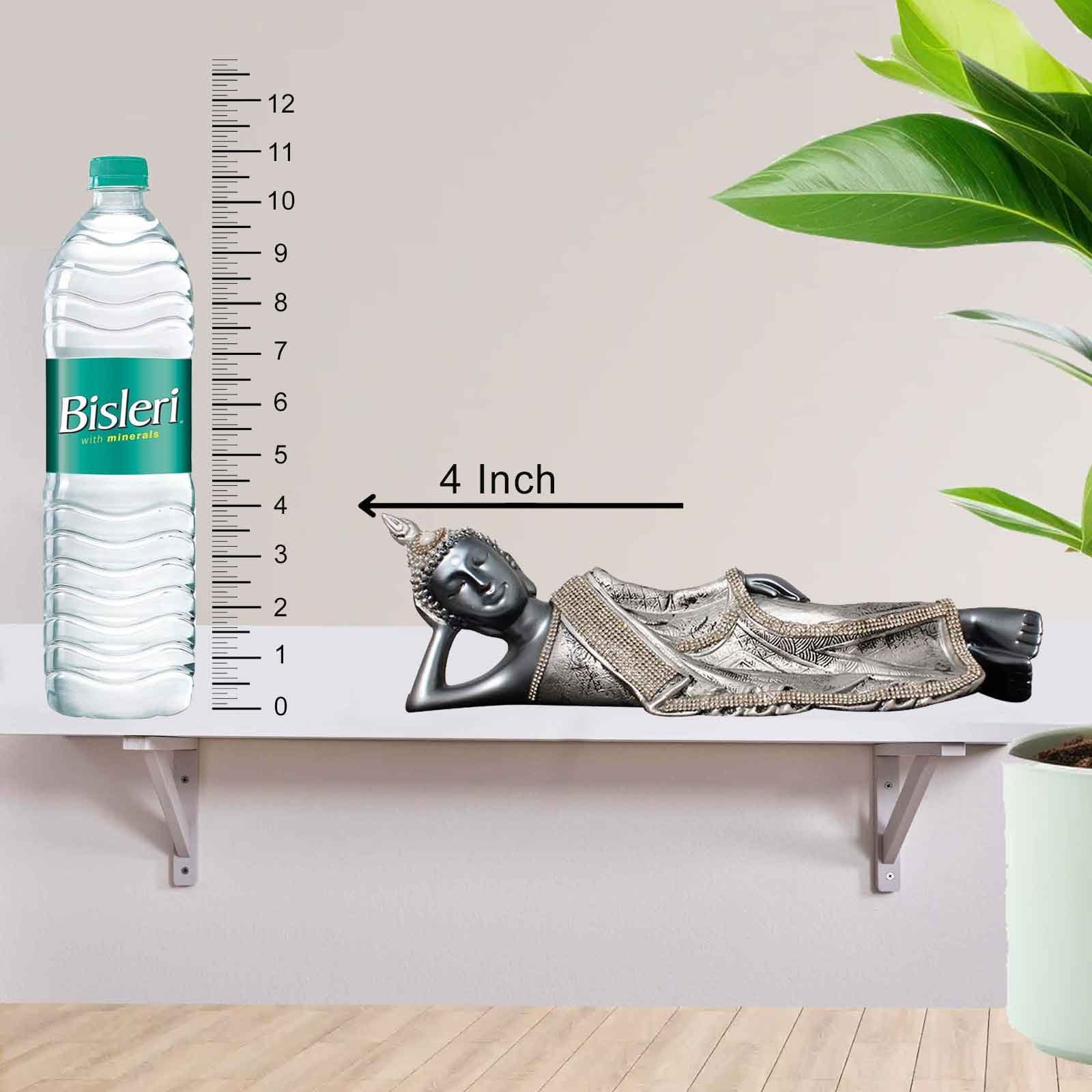 Sleeping Buddha murti for living room Silver Antique Finish 10 cm G57GX1102SSSGZ