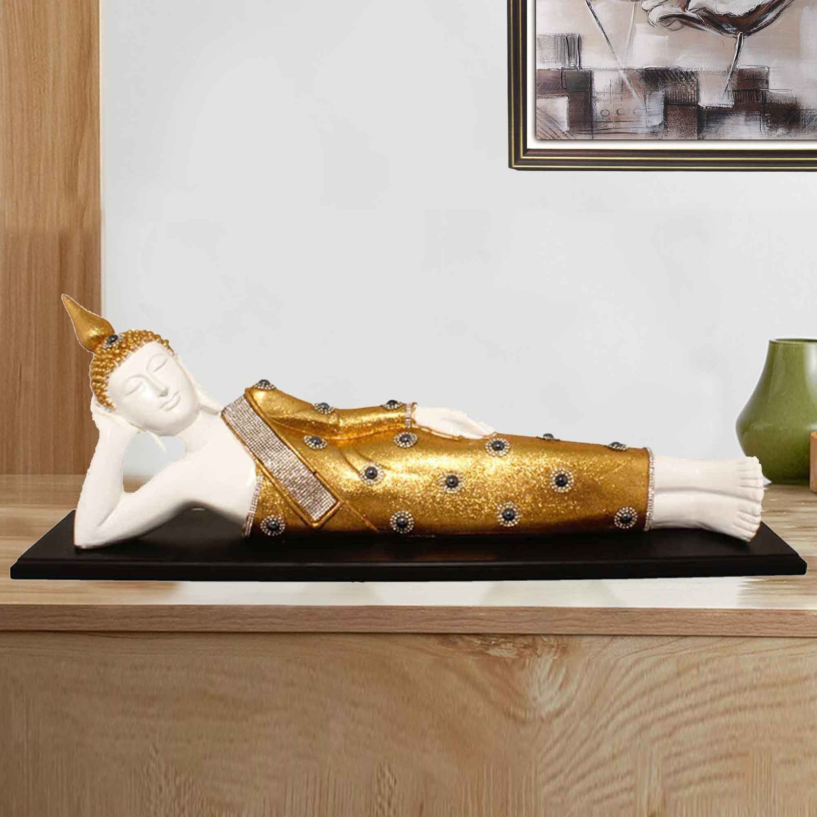 Make in India Sleeping Lord Buddha is made by professional artisans using high quality row material. Great look with unfadable color. Showpiece direct from factory at wholesale price This Showpiece is easily cleanable by wet/Dry Cotton Cloth.