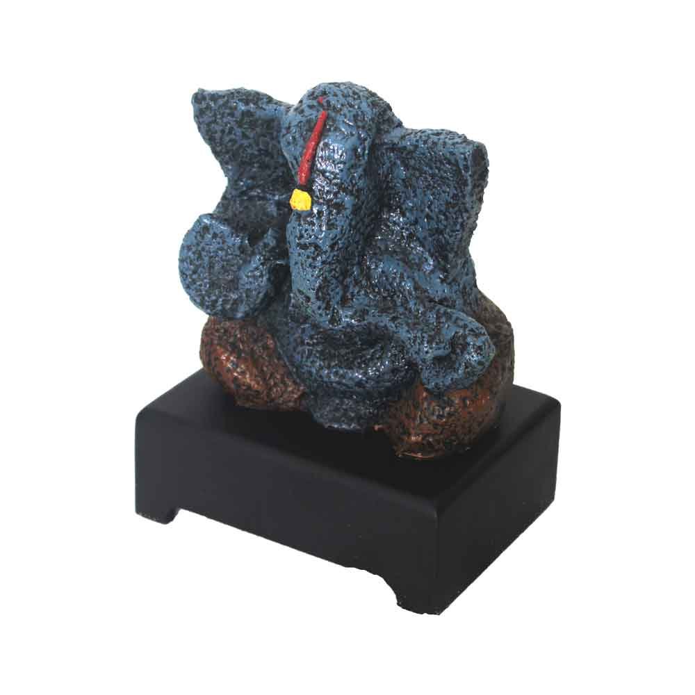 Small Ganesha showpiece for home decor living room Matte Finish with Wooden Base...