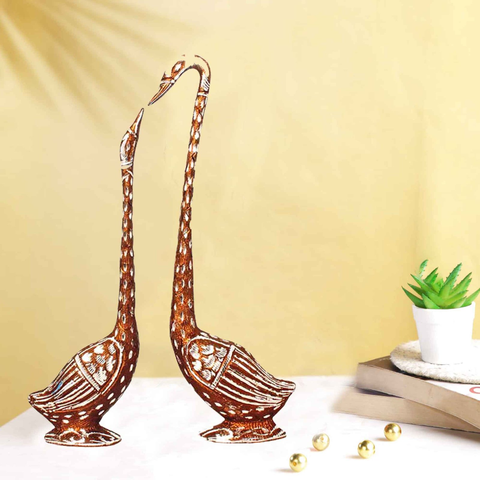Make in India swan Pair Showpiece is made by professional artisans using high quality row material. Great look with unfadable color. Showpiece direct from factory at wholesale price This Showpiece is easily cleanable by wet/Dry Cotton Cloth.
