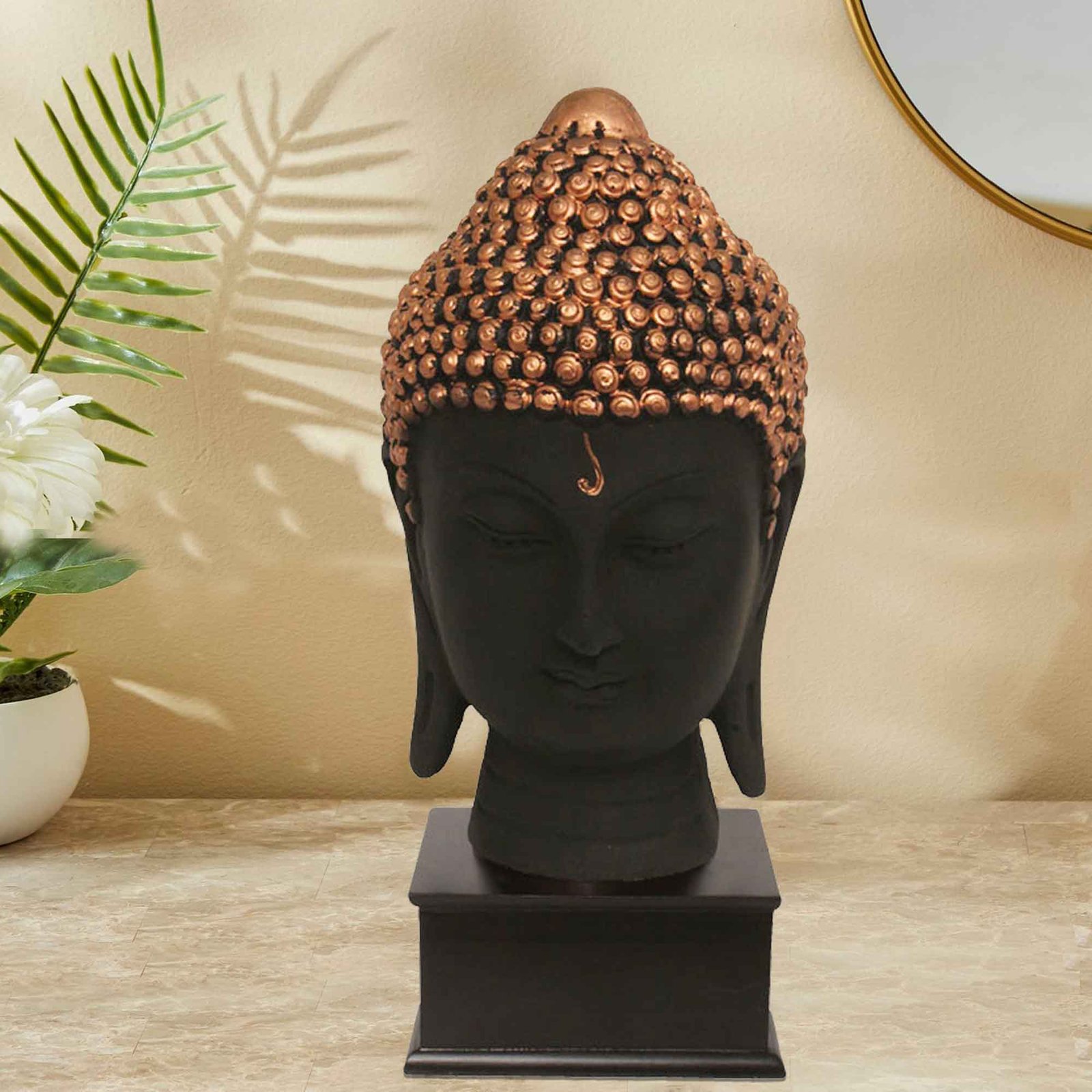 Tabletop Gautam Buddha Face showpiece for gift Matte Finish with Wooden Base 32 cm G57GW1060KCNMX