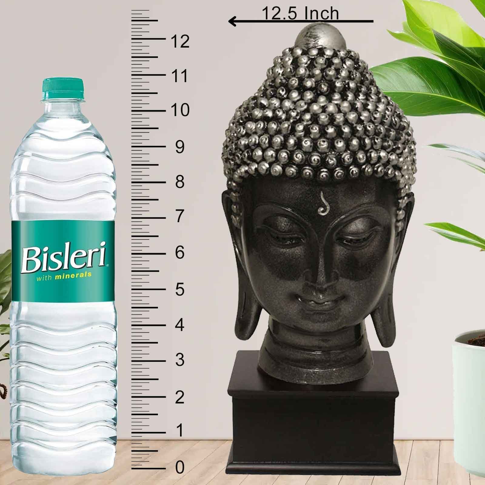 Tabletop Gautam Buddha Face showpiece for home decor living room Silver Antique Finish with Wooden Base 32 cm G57GW1060SSAGX