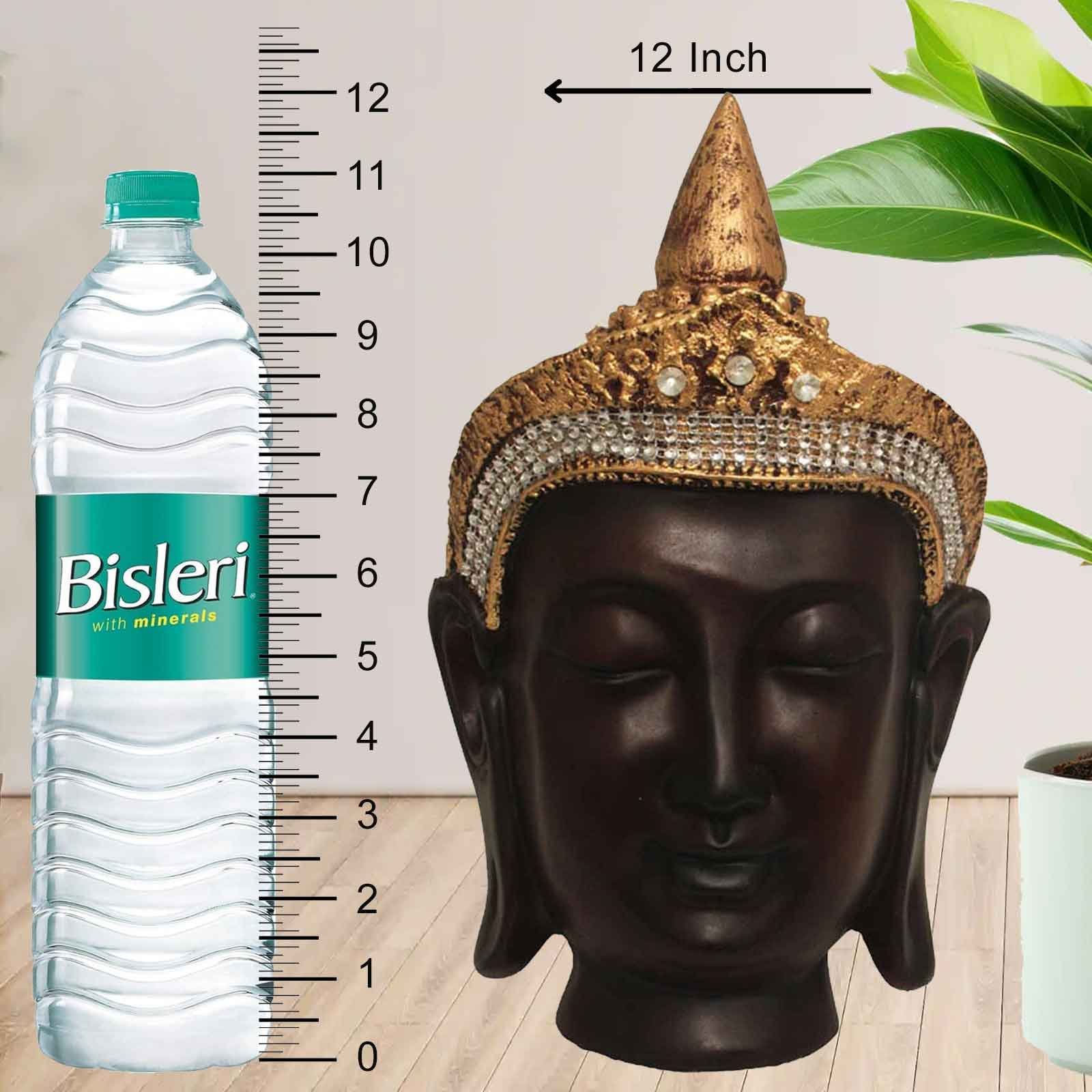 Lord Buddha Bust idols for home decoration Antique Finish with Wooden Base 48 cm...