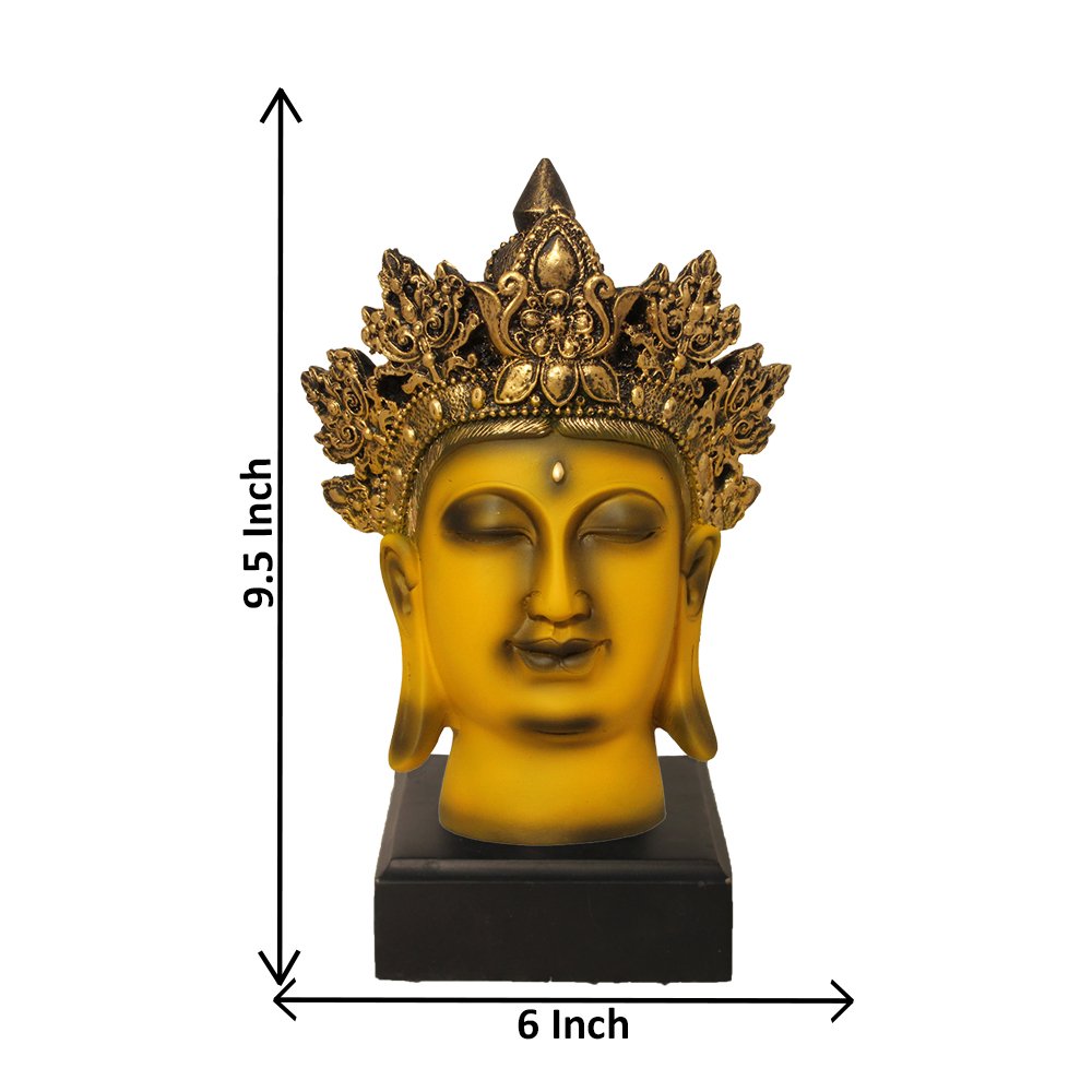 Taj Gautam Buddha Face artifacts for home decor Matte Finish with Wooden Base 24 cm G57GW1069YGNMX