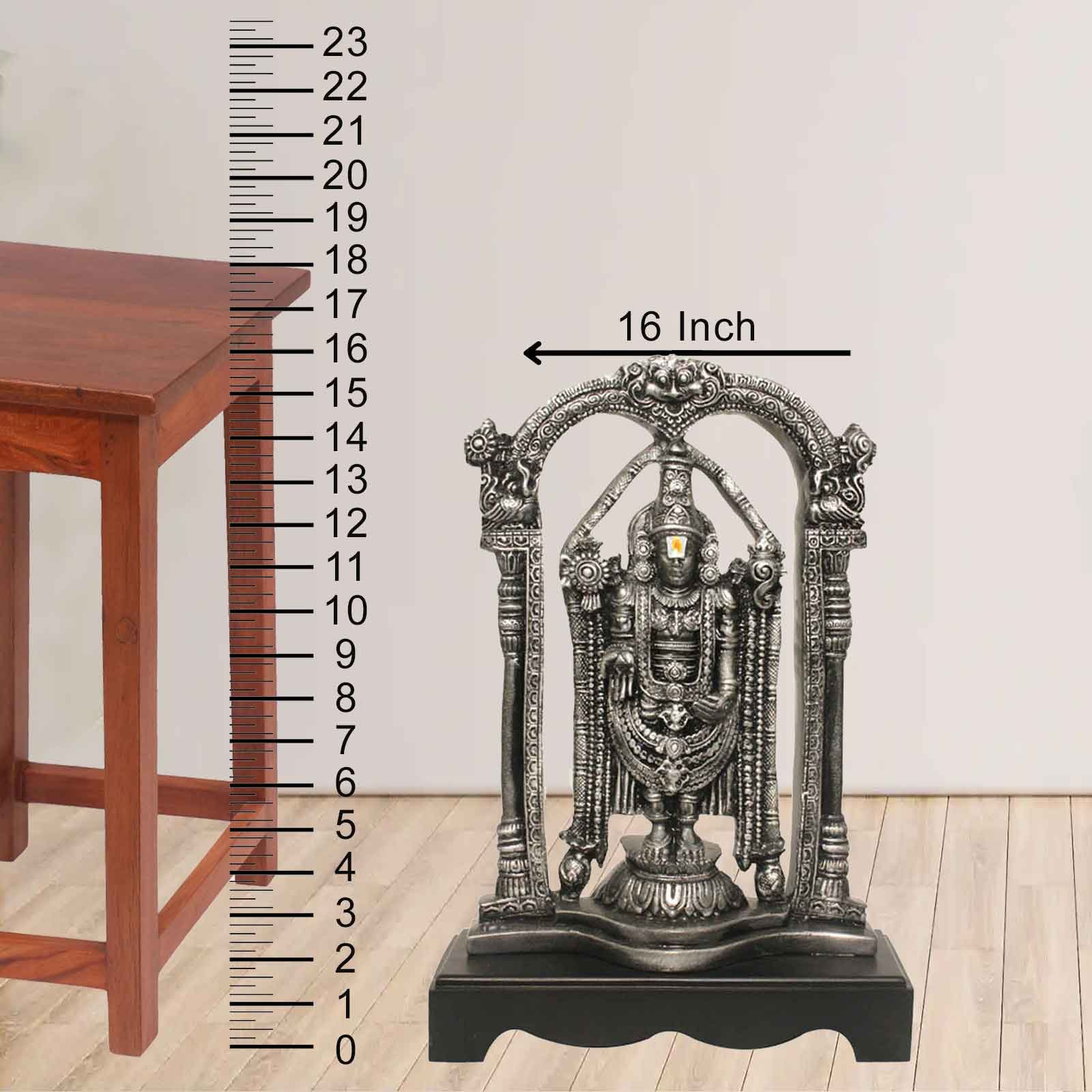 Venkateshwar Balaji murti for home decoration Silver Antique Finish with Wooden Base 41 cm G57GW1124SSAGX